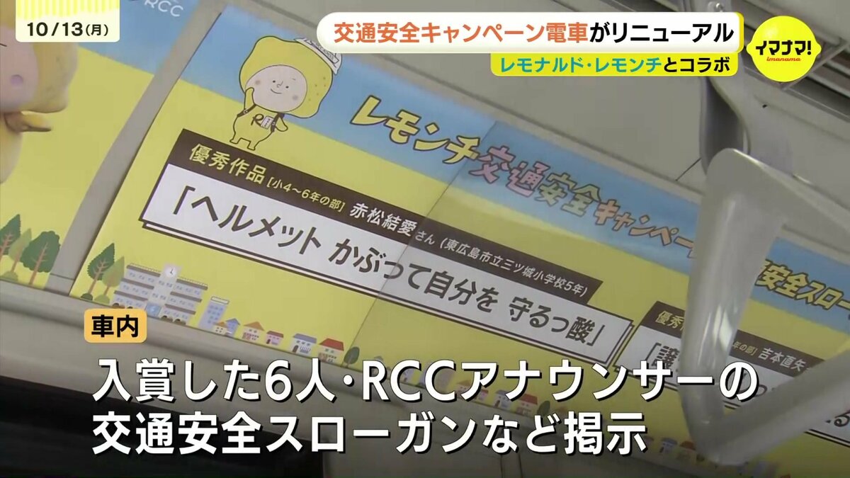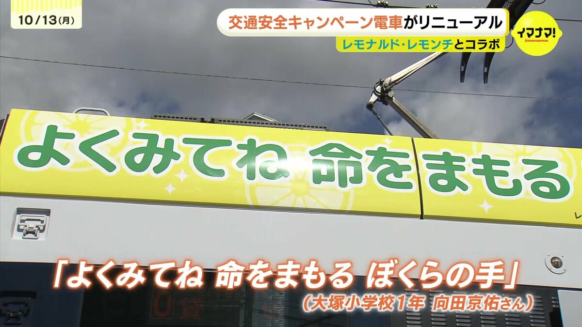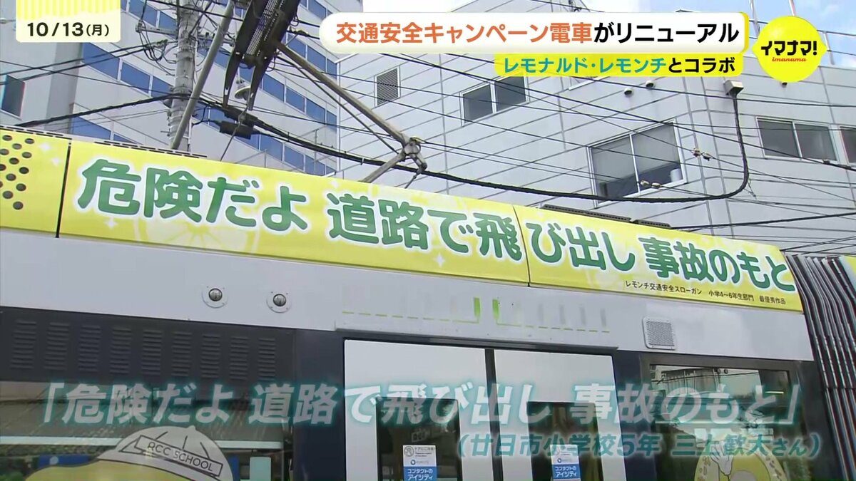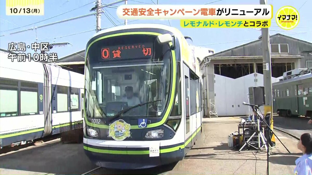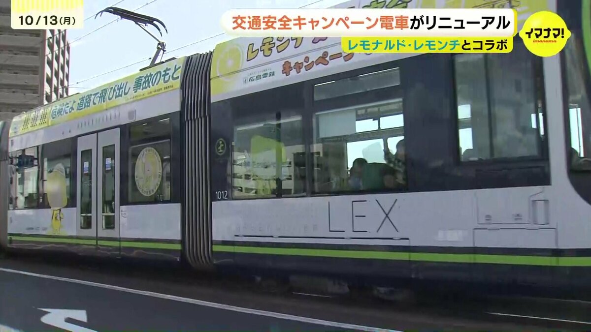 広島電鉄とイマナマ!のキャラクター「レモナルド・レモンチ」がコラボした、交通安全キャンペーン電車がリニューアルされました。