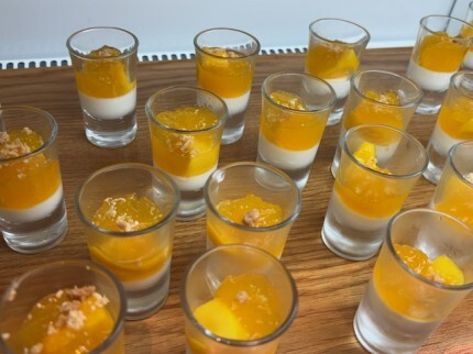 ケーキ、フルーツなど、見た目にも華やかなスイーツが並ぶデザートコーナー。