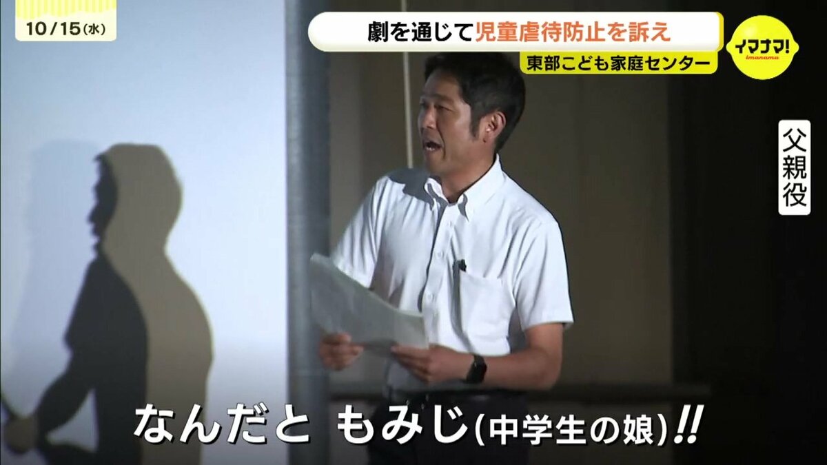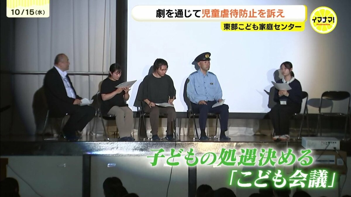 この取り組みは中学生に虐待への理解を深めてもらおうと企画しました。劇には東部こども家庭センターの職員のほか中学校の教員や警察も参加しました。