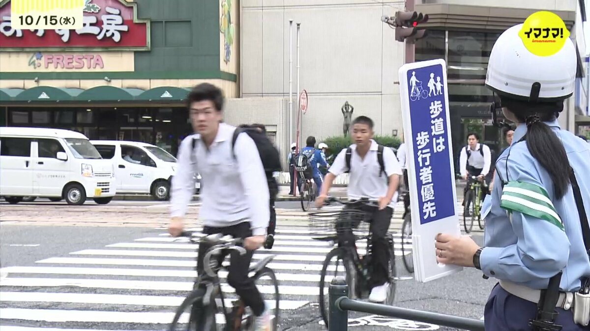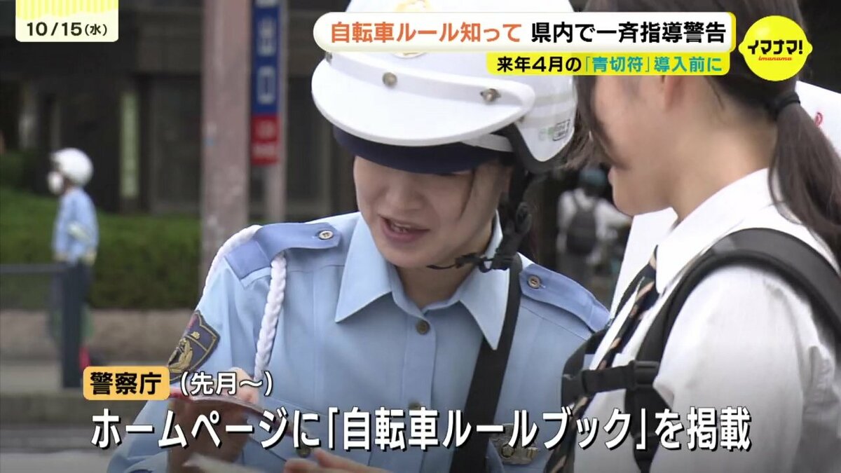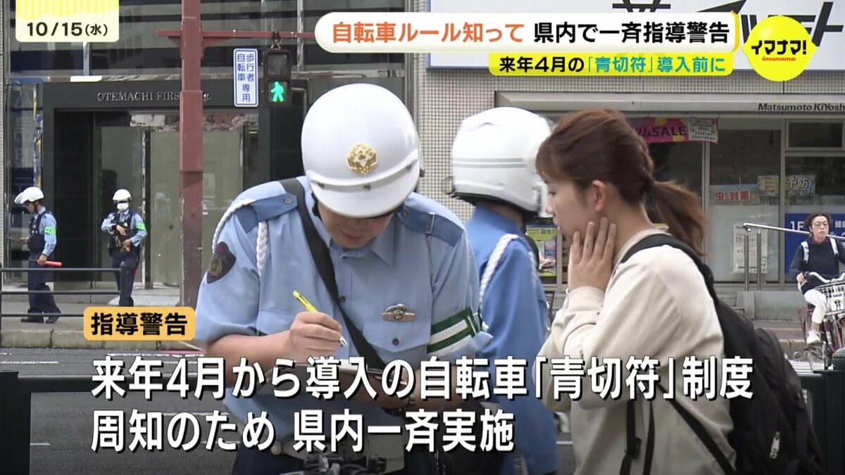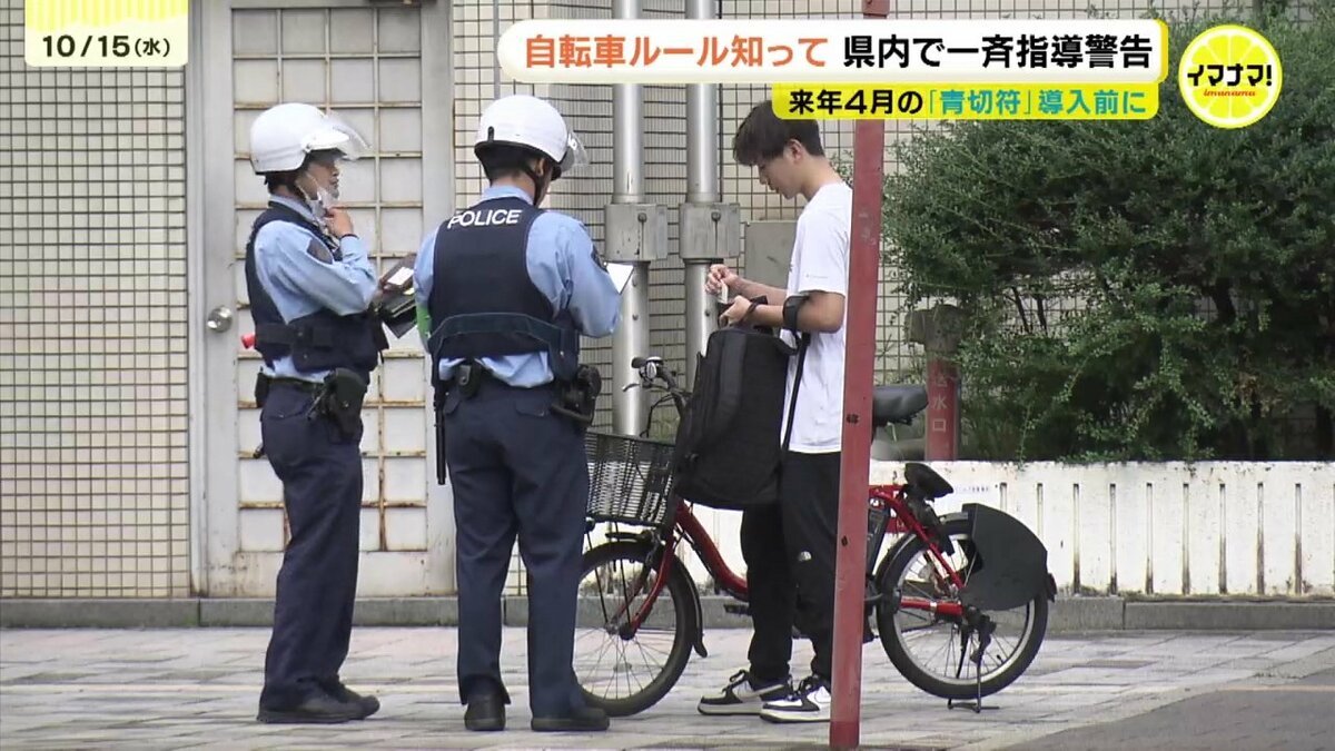 来年4月から自転車にも「青切符」が導入されることを知ってもらおうと、警察は事故が起きやすい交差点で自転車利用者に指導、警告を行いました。