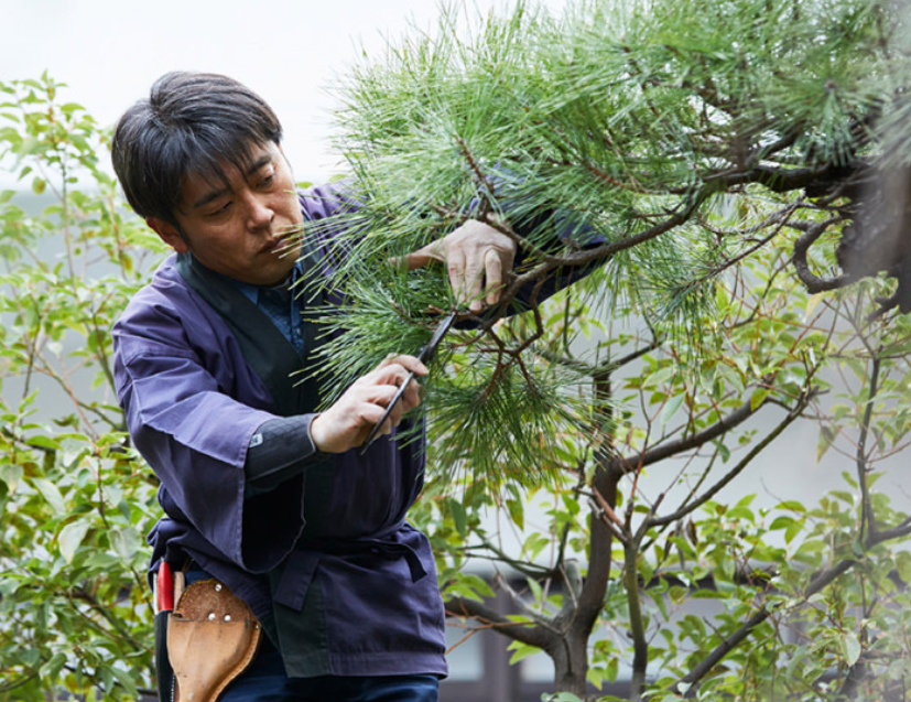 作業(お手入れ)の方法を知り、少しずつ自分の思い描く形に変化させる。時として木と対話しながら、と語ります。