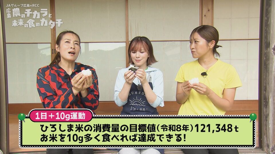 県民1人1人が、10g=ひと口多く食べるだけで、来年の「ひろしま米消費量の目標値」が達成できる❗😃❗