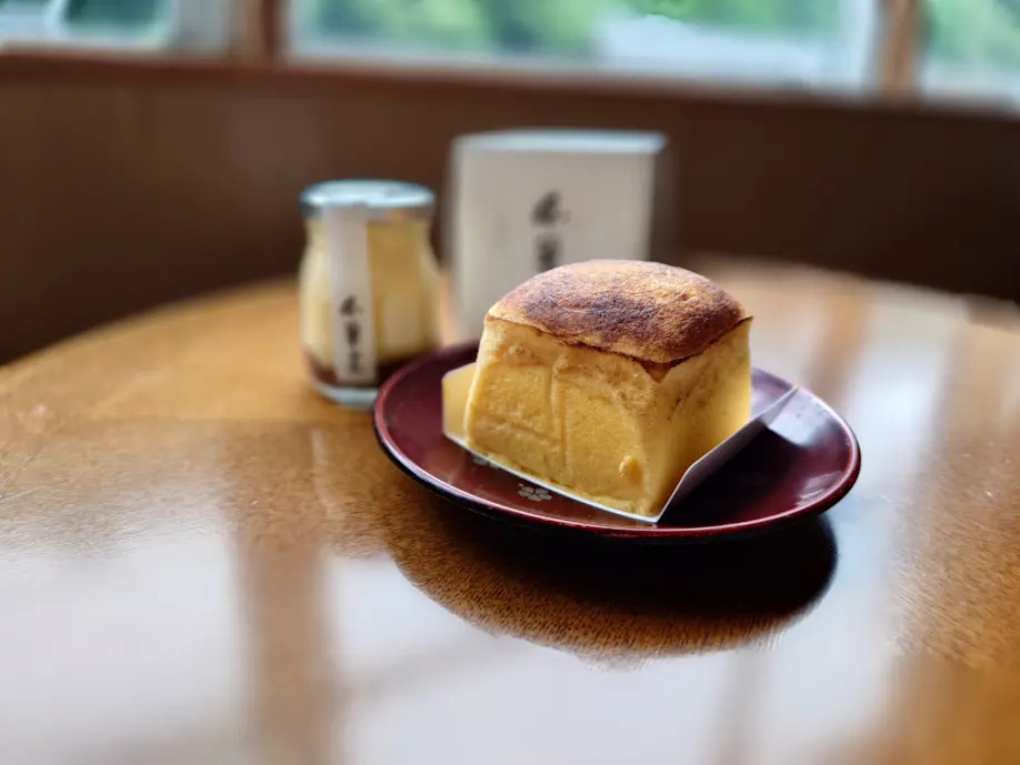 JR城崎駅前で注目を集めている「本巣ヱ」では、ふわっしゅわっとした食感が楽しい「たまごパン」が看板メニュー。ふんわり甘くて、焼き立てはもちろん、冷やしても美味しかったです。店頭の焼き上がり時間を確認して並びましょう。