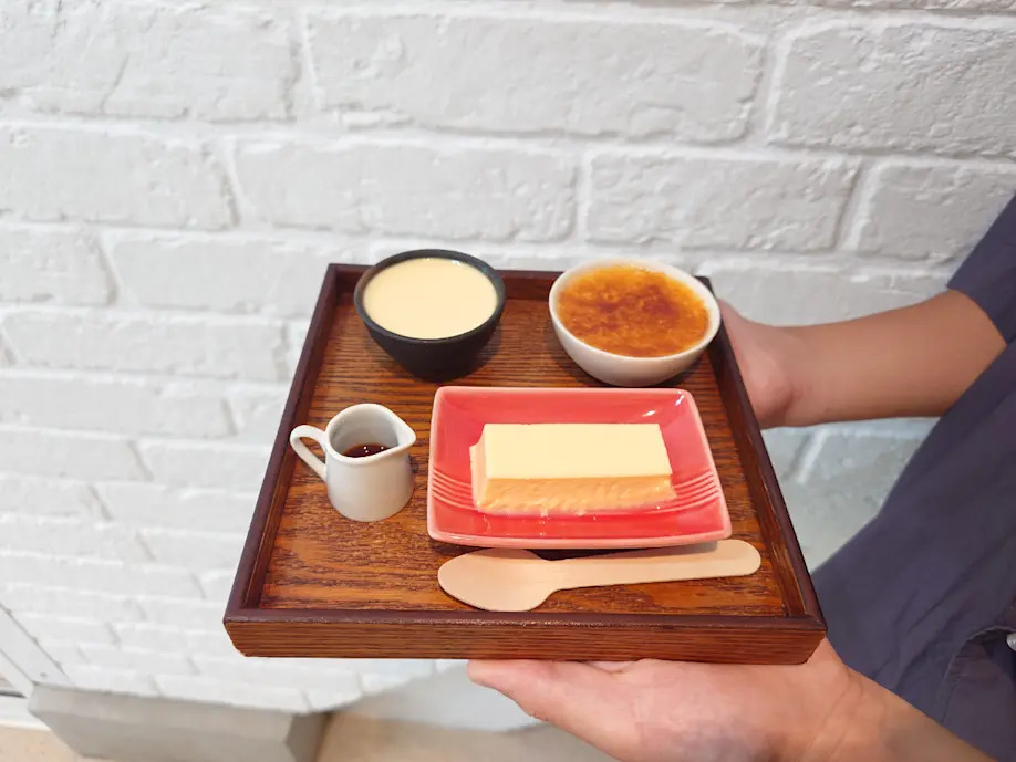 旅の始まりにぴったりなスイーツを。「城崎プリン専門店 kiman」の新鮮な卵黄のみを使ったプリンは、砂糖ひかえめで何個でも食べられそうな軽やかさ。たまごプリン、クレームブリュレ、プレミアムプリンが小さいサイズで一度に味わえる「Kiman」アソートセットが人気!