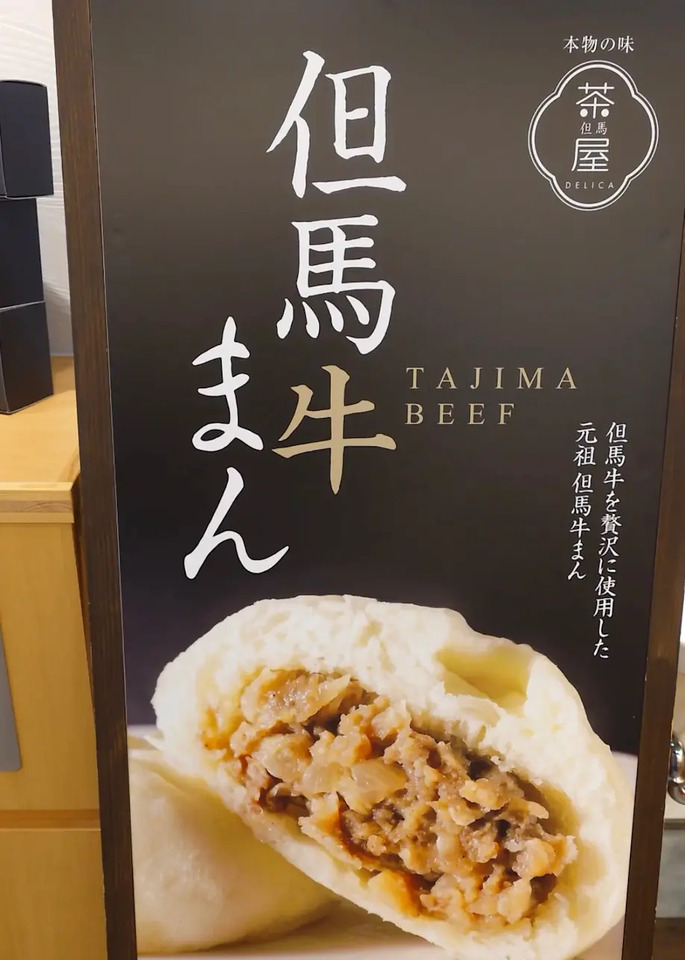 地元ブランド肉を使った肉まんを販売する「但馬デリカ茶屋」。但馬牛や城崎蟹、八鹿豚など、素材にこだわったラインナップが揃います。