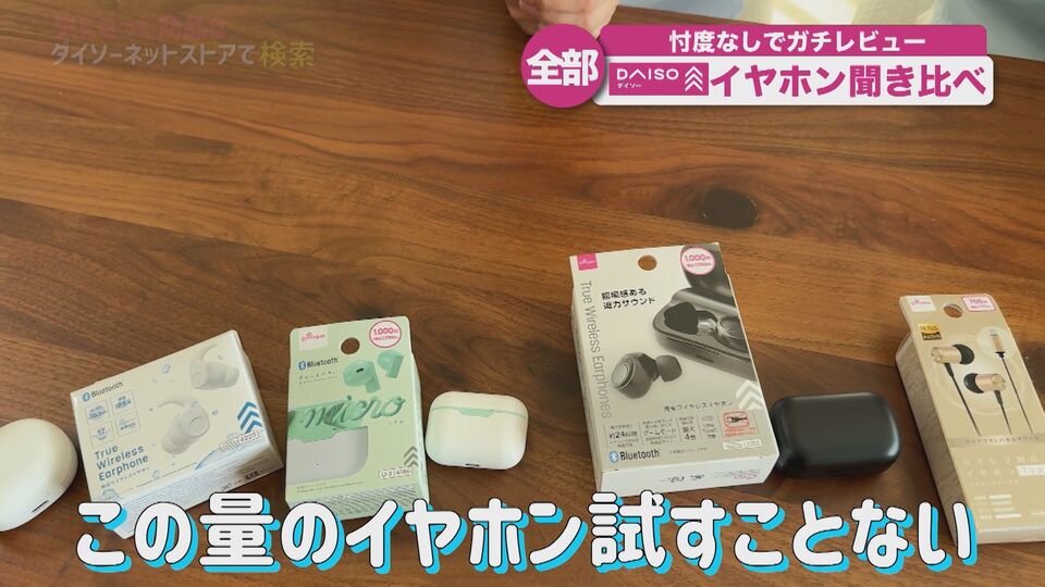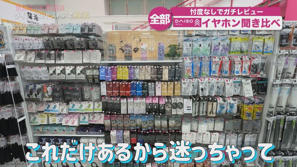 ダイソーのイヤホン売り場に行くと、棚一面さまざまなイヤホンが並んでいますよね。