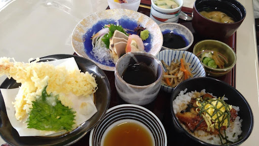 厳選の刺身にカリカリの天ぷら、鰻丼とハレの品々が並ぶ嬉しい定食。