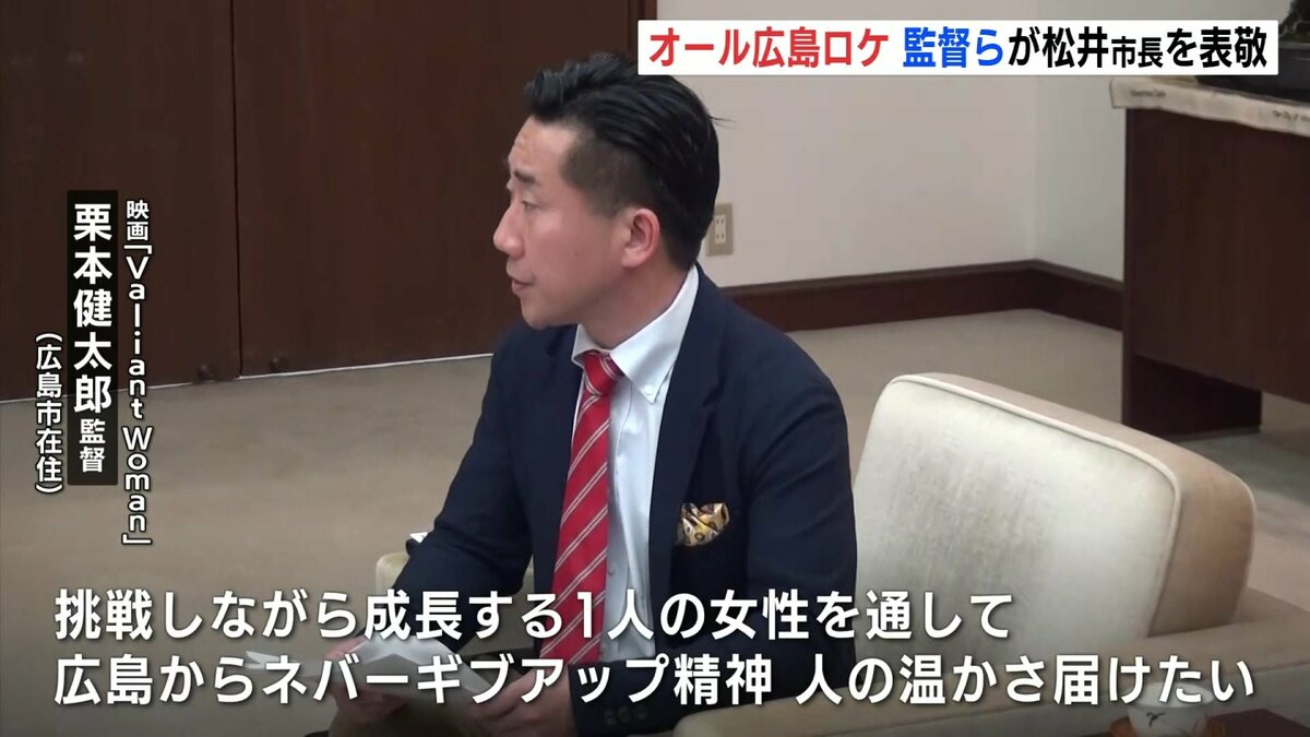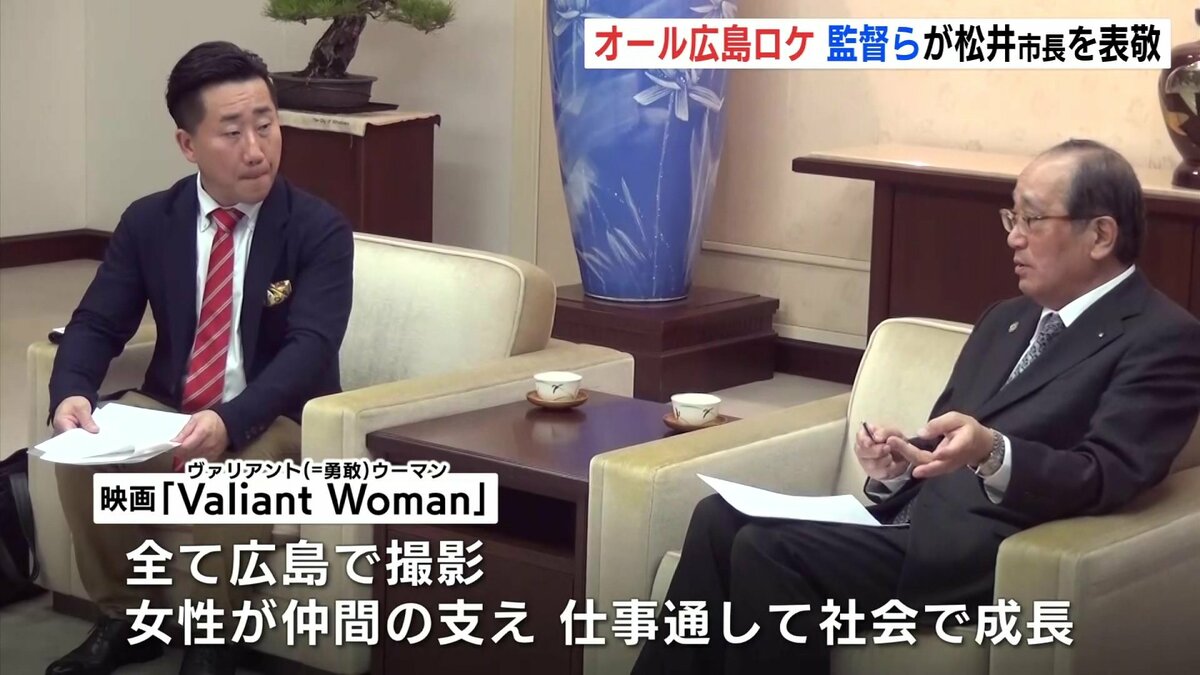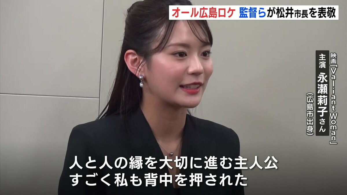 映画「ValiantWoman」は広島市中心部など全て広島で撮影が行われます。主演で広島市出身の俳優、永瀬莉子さん演じる女性が、仲間の支えや仕事を通して、社会で成長していく物語です。松井市長は、「広島を世界に広めて下さい」とエールを送りました。撮影は、11月1日始まり、12月末まで続きます。