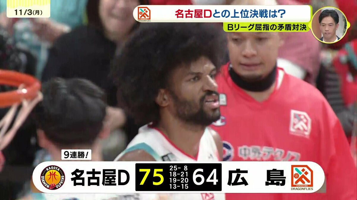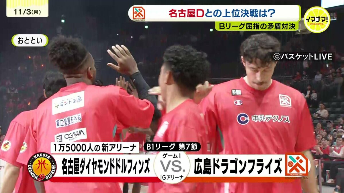 B1西地区3位で攻撃が売りの広島ドラゴンフライズは同じ西地区2位でディフェンスが売りの名古屋ダイヤモンドドルフィンズとBリーグ屈指の矛盾対決となりました。