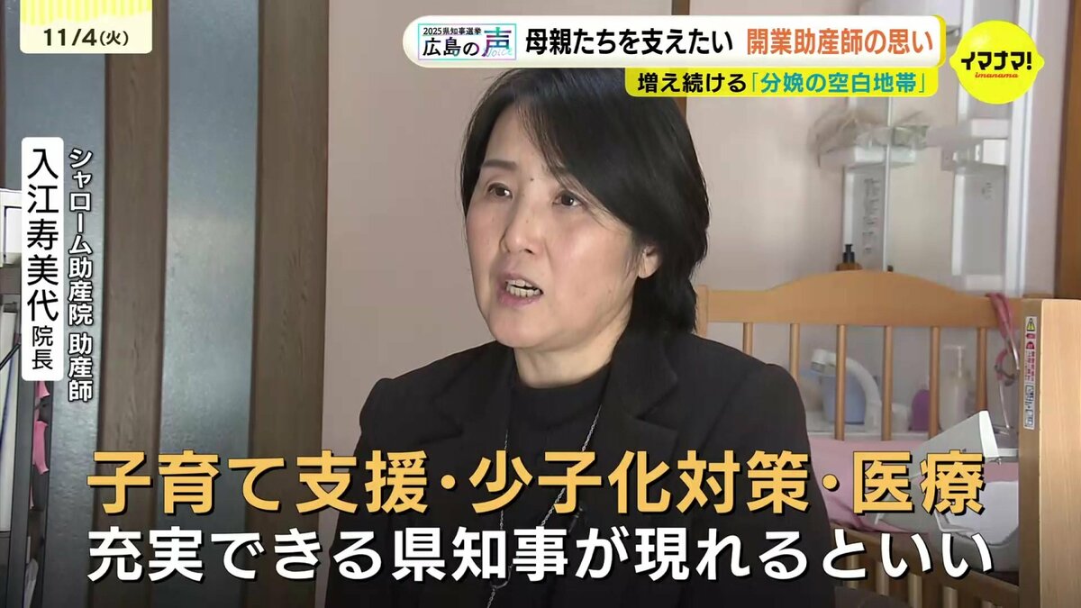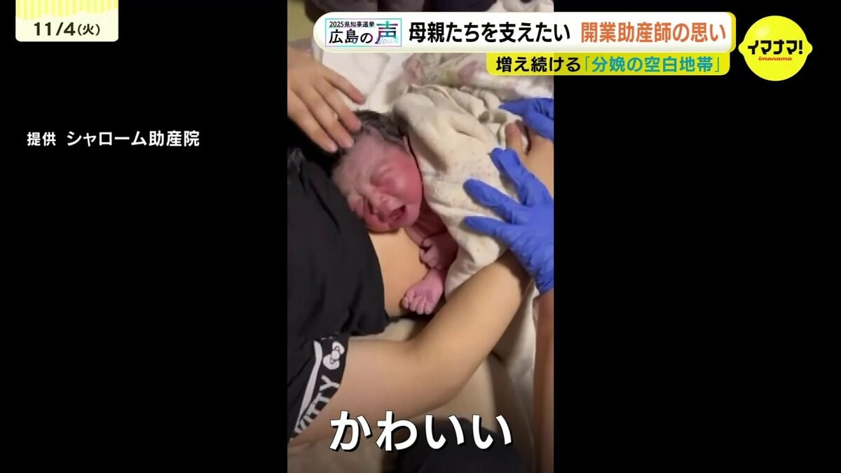 9日の県知事選を前に、広島県の課題をお伝えする「広島の声」。きょうは「出産・子育て」を考えます。お産を取り扱う医療機関がない“分娩の空白地帯”が全国的に広がる中、母親と赤ちゃんを支えようと、東広島市で開業した助産院を取材しました。