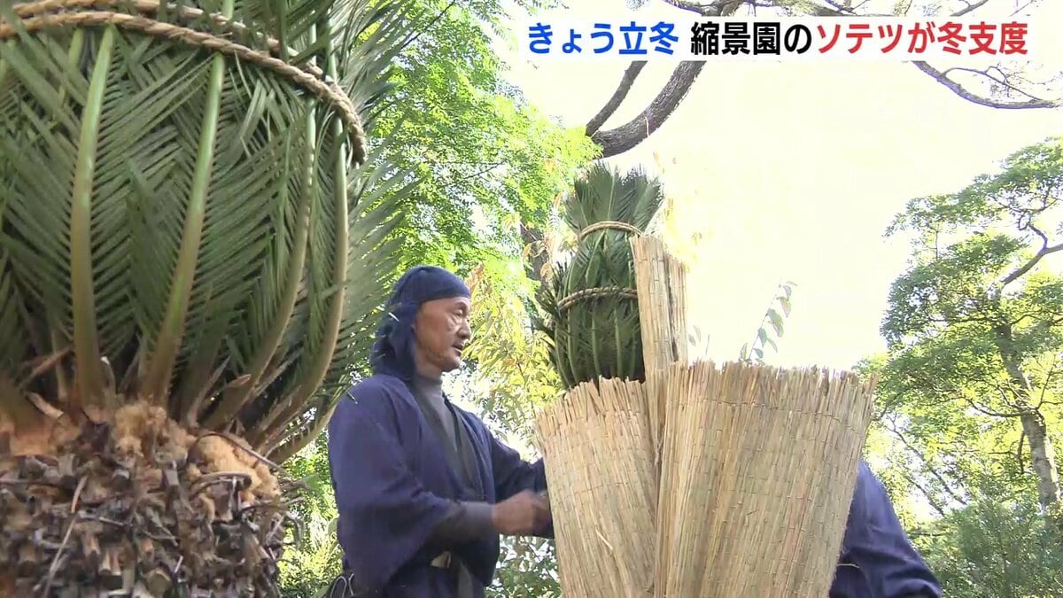 7日は「立冬」です。広島市にある縮景園ではソテツの冬支度「コモ巻き」が行われました。