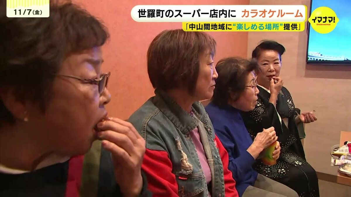 このスーパーの常連客だという地元住民4人がさっそく利用しました。世羅町にはスナックなど夜間営業の店舗にしかカラオケ設備がなく、カラオケを歌いたい人は三原市などに出かけていたといいます。