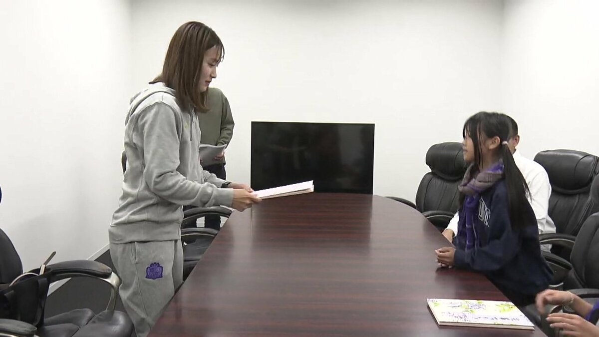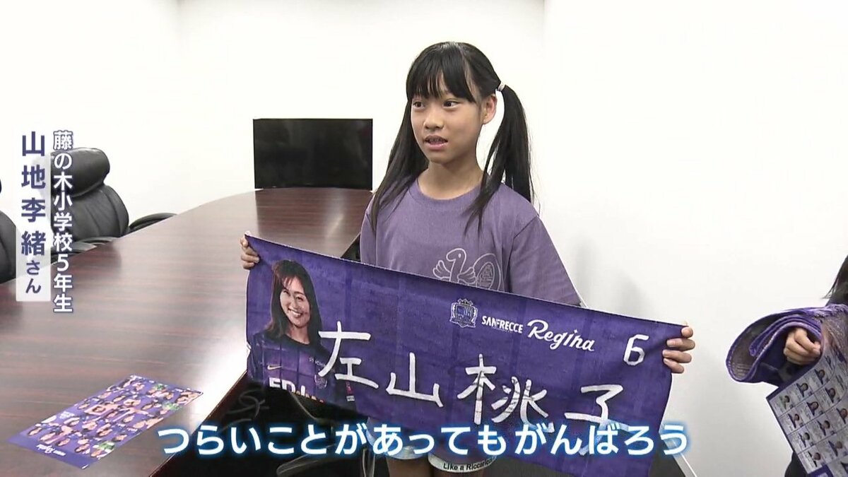 けがで長期療養しているサンフレッチェ広島レジーナのキャプテン・左山桃子選手を応援しようと、8日、地元の小学生たちがメッセージを送りました。