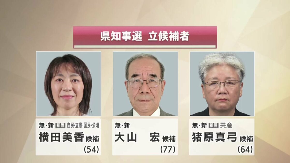 このうち県知事選挙には、ご覧の3人が立候補しています。