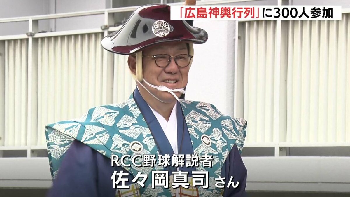 大神輿をかつぐなどして約1.3kmを練り歩く行列には、RCC野球解説者の佐々岡真司さんも参加。沿道はおよそ2万人の観客でにぎわいました。