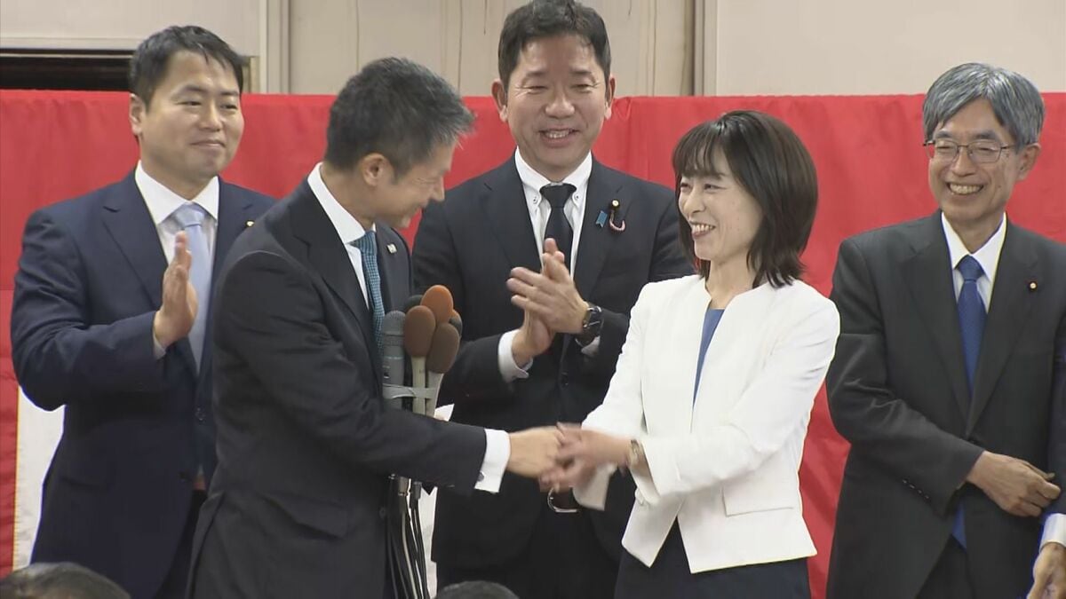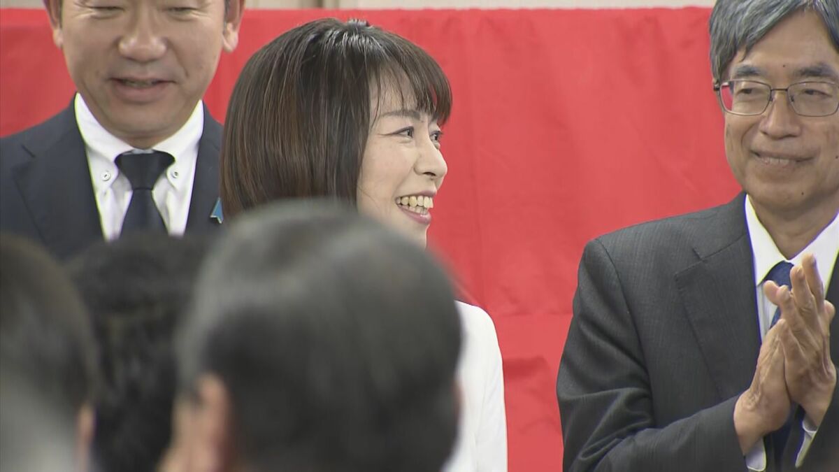 横田さんは、4期16年続いた湯崎県政を継承し、さらに発展させると強調。自民、立憲、国民、公明の各党から推薦を得て、与野党相乗り候補として、組織戦を展開しました。