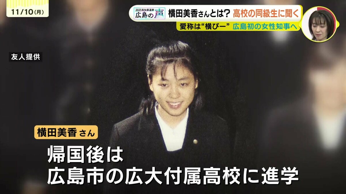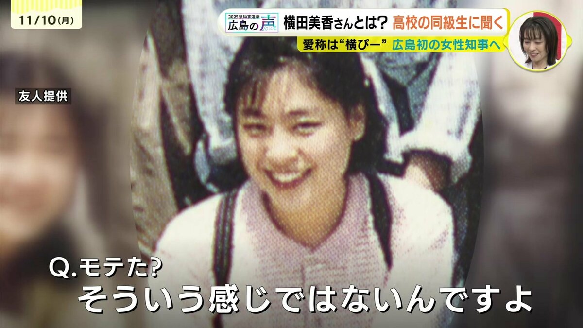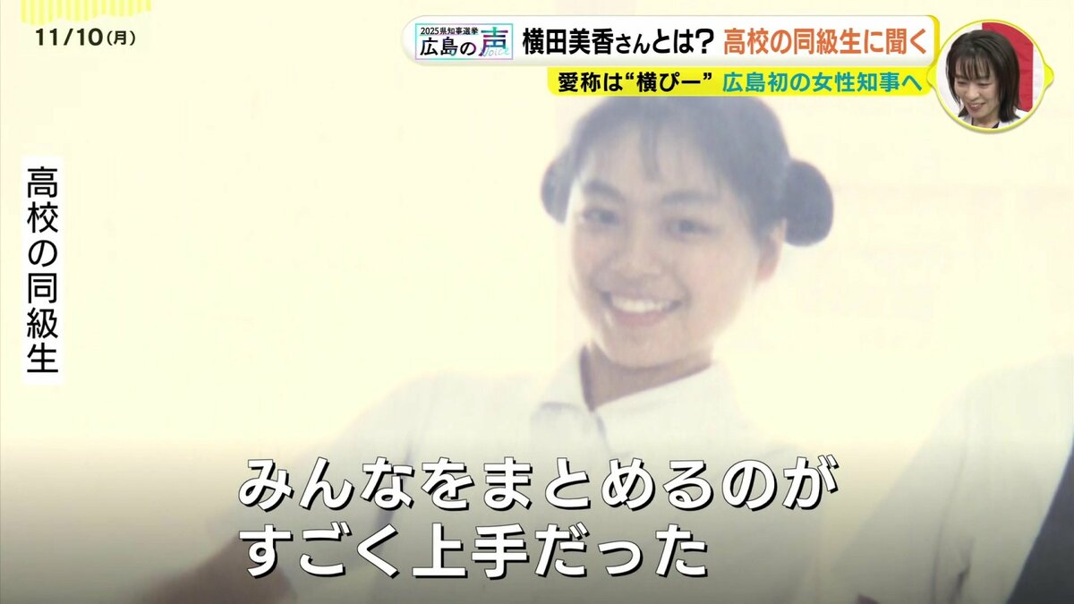 9日投開票が行われた広島県知事選。初当選した横田美香さんの人柄について、高校時代の同級生に聞きました。