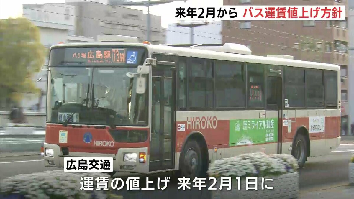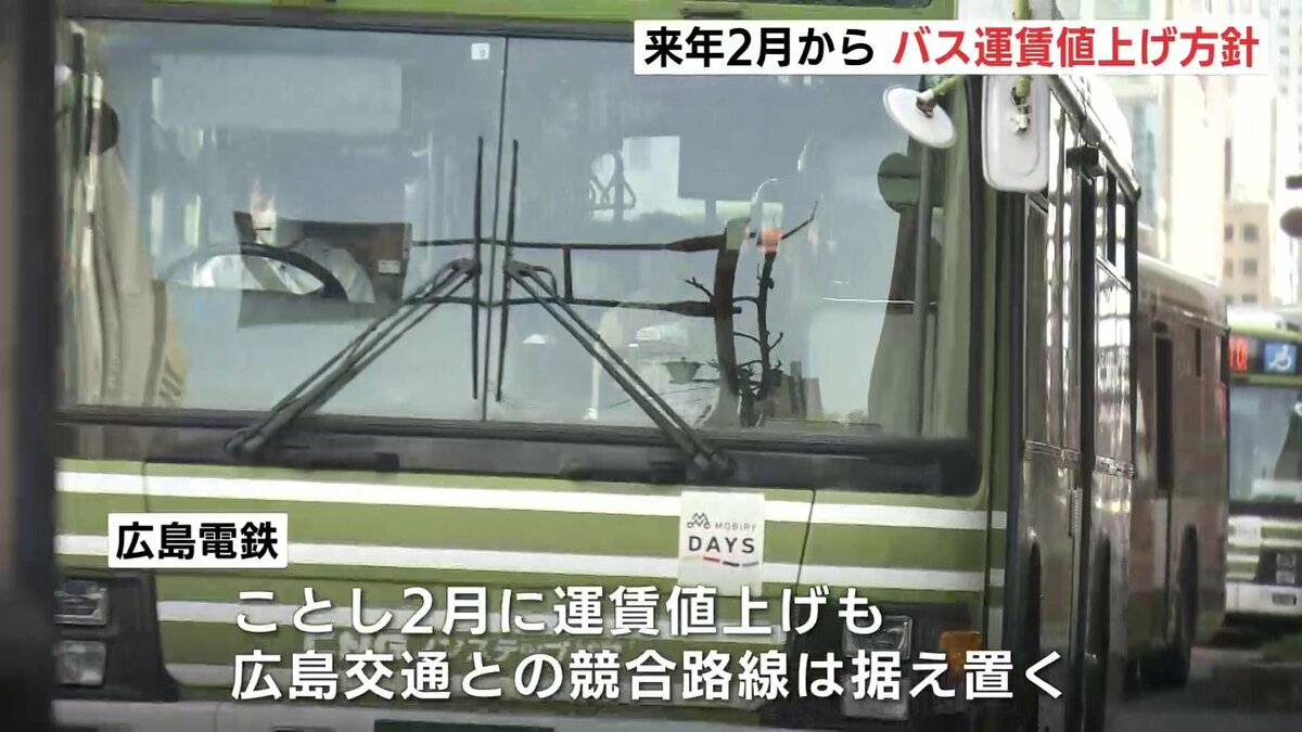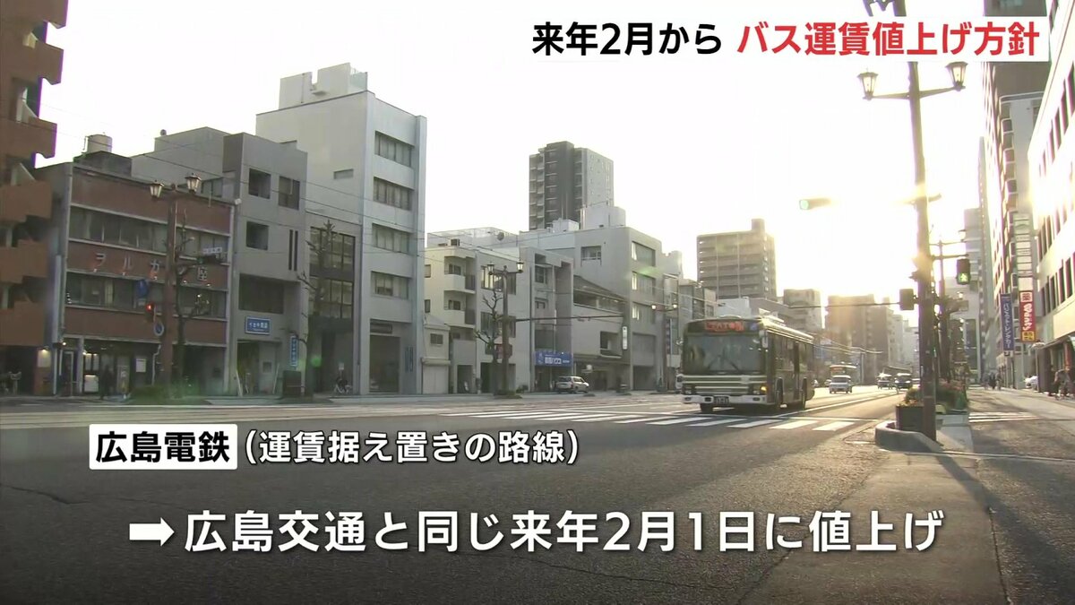 ことし2月に運賃を値上げした広島電鉄は、広島交通と競合する広島市北部方面のバス路線では「乗客が分かりにくい」として運賃を据え置いていましたが、広島交通と同じ来年の2月1日に値上げをするということです。