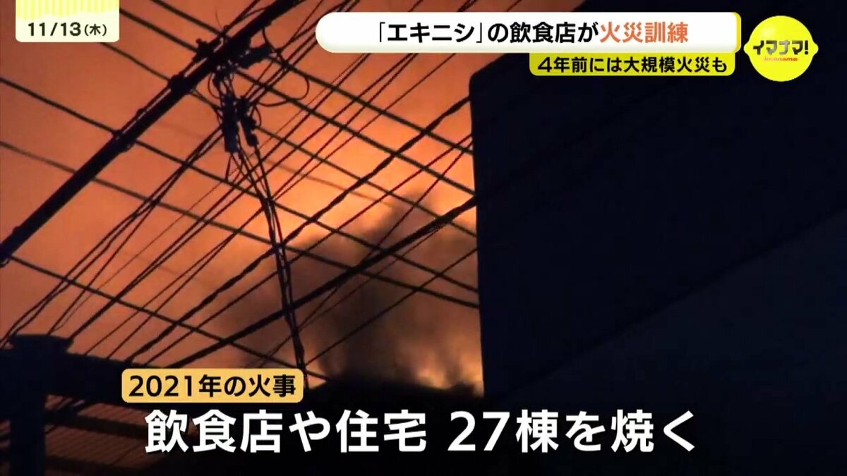 エキニシでは4年前、大規模な火事がありました。木造の建物が密集していることから、飲食店や住宅27棟を焼きました。火は約10時間後に消し止められ、2人がけがをしました。