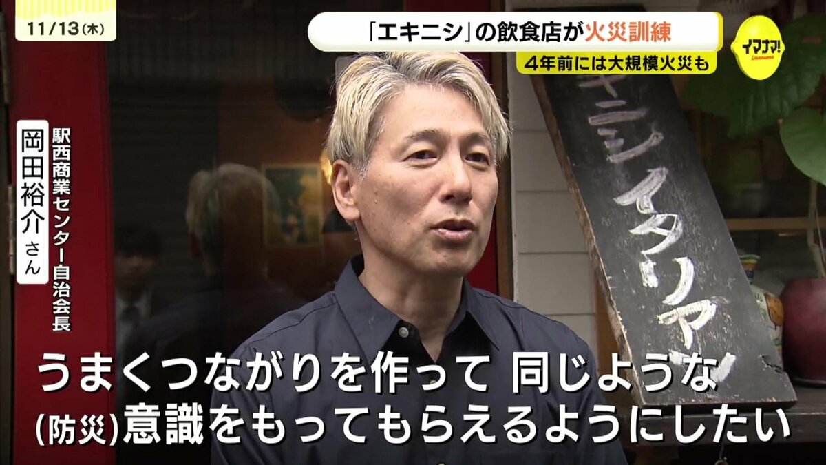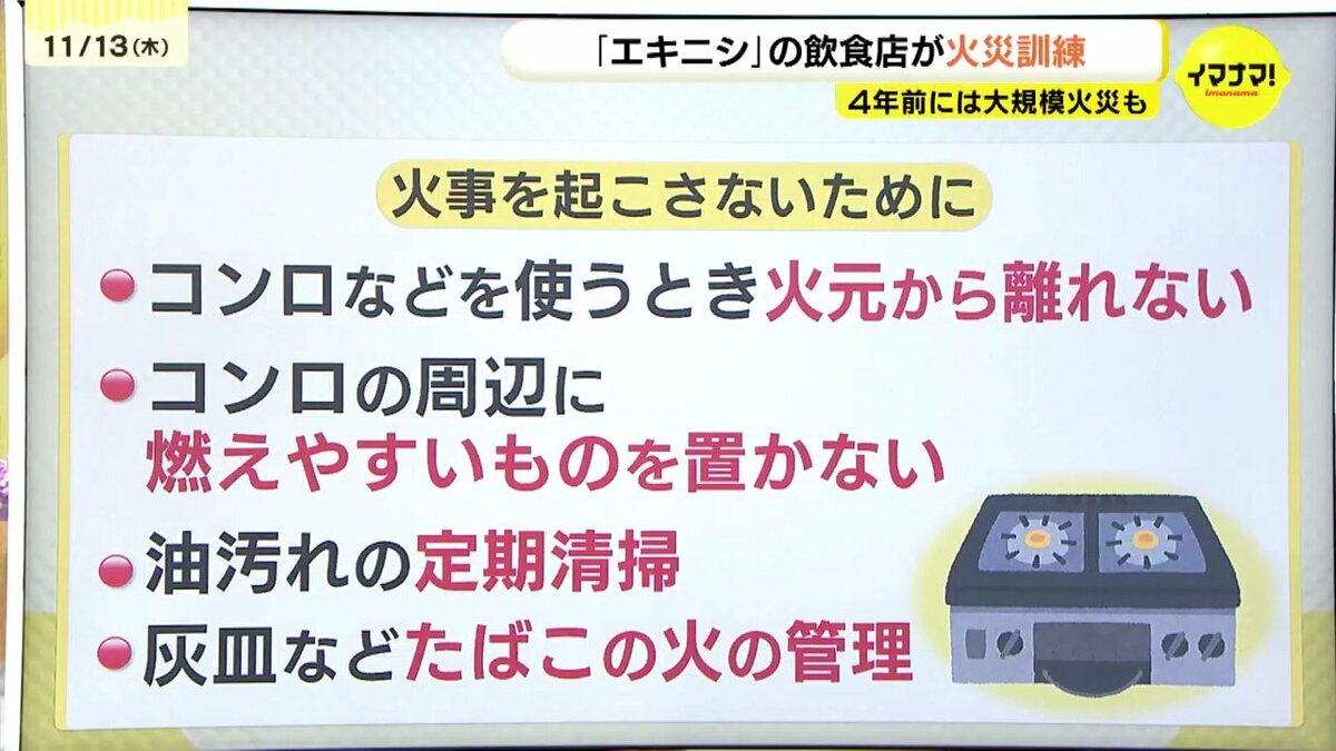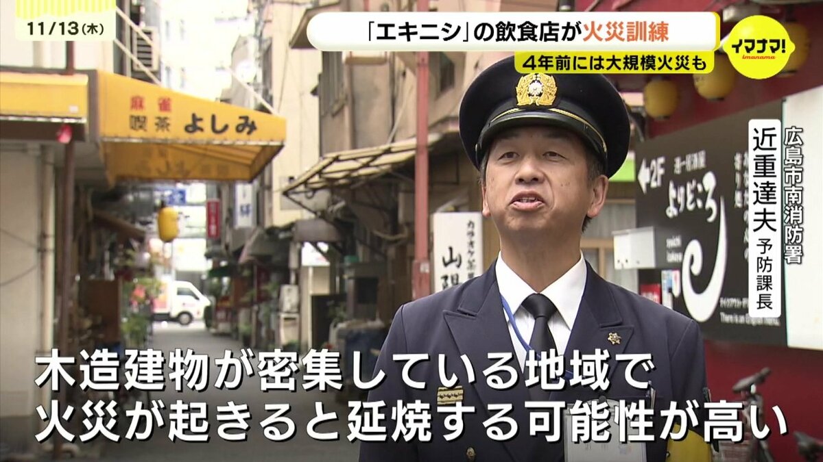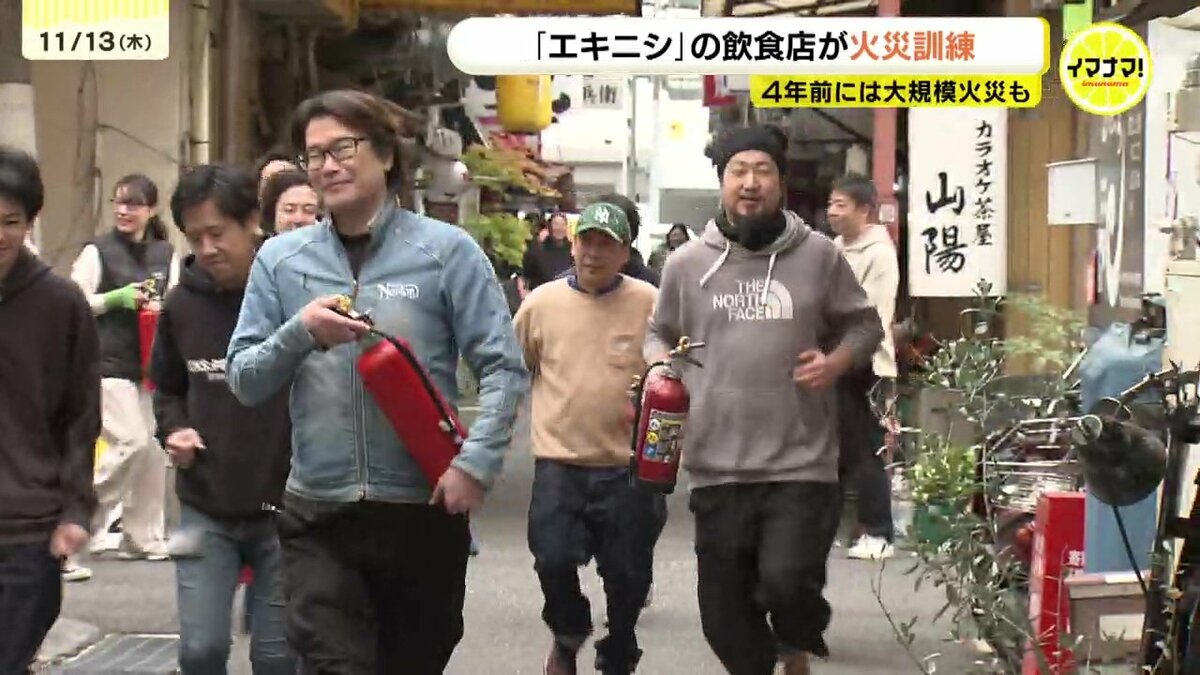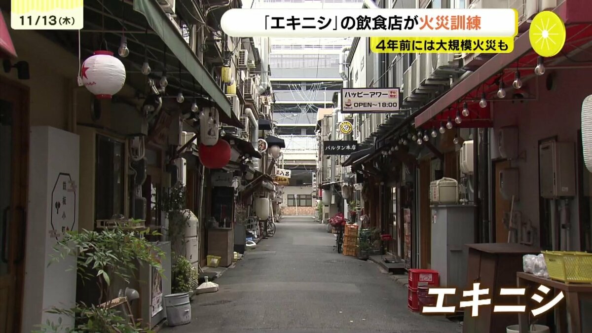 飲食店が連なるJR広島駅西側の「エキニシ」で、火災訓練がおこなわれました。