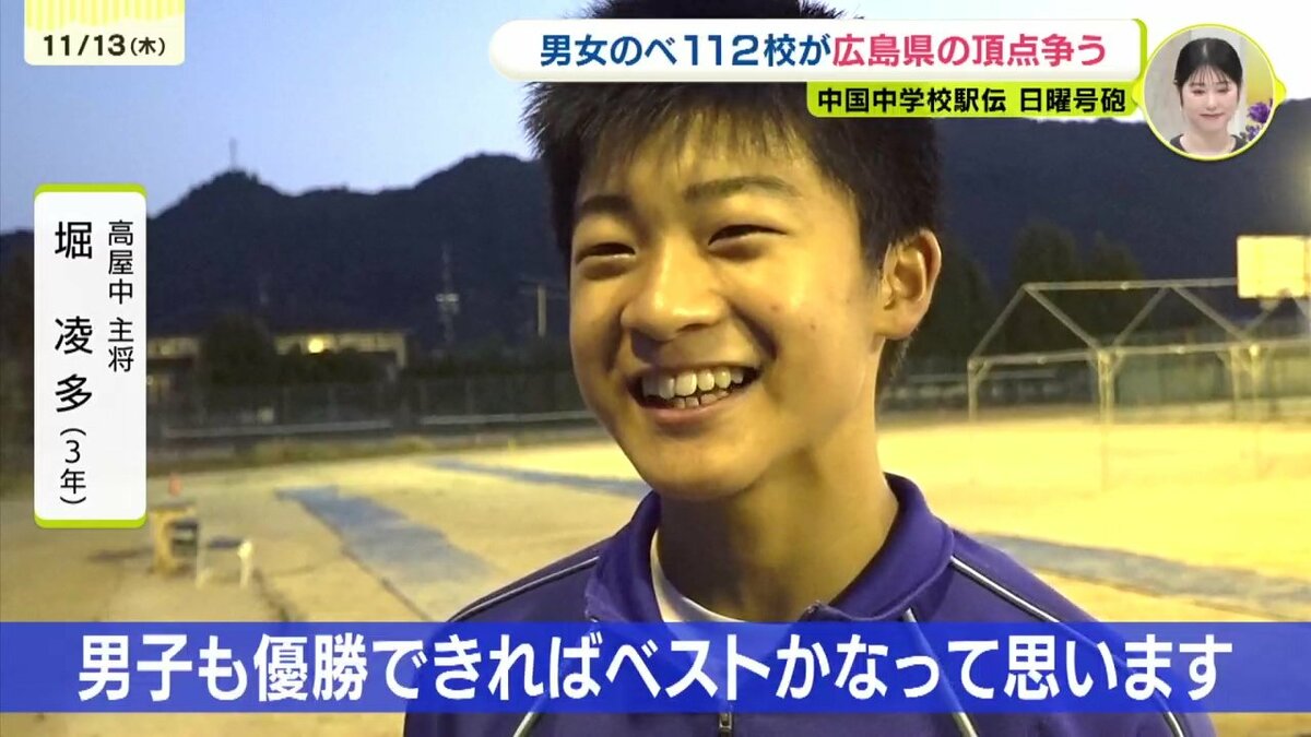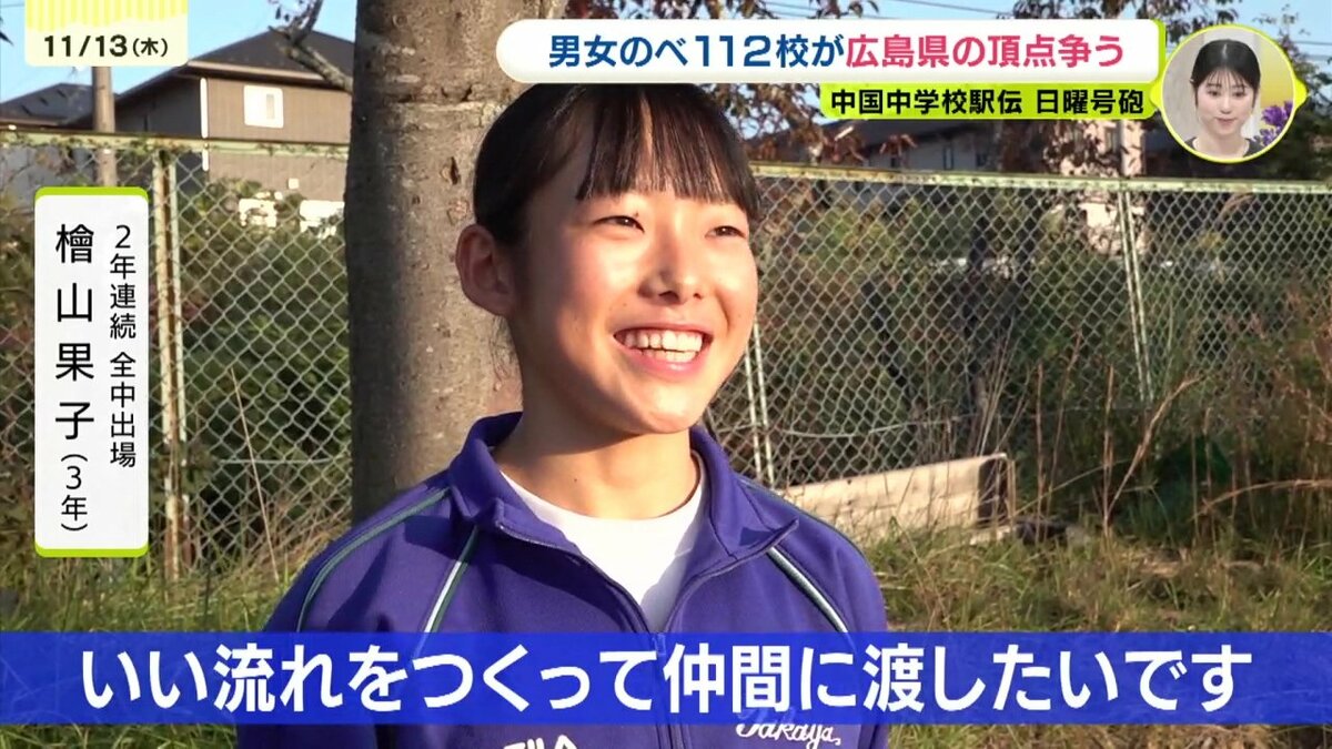 広島県内の各地区で予選を勝ち抜いた中学校が全国大会の切符をかけタスキをつなぐ中国中学校駅伝が16日に東広島市で開催されます。