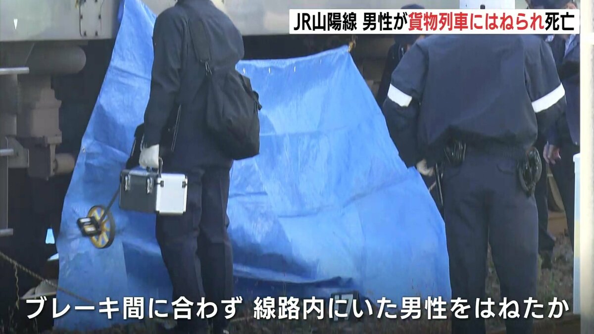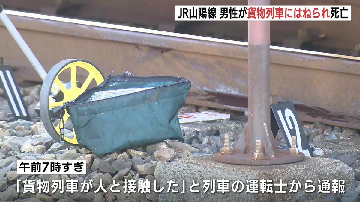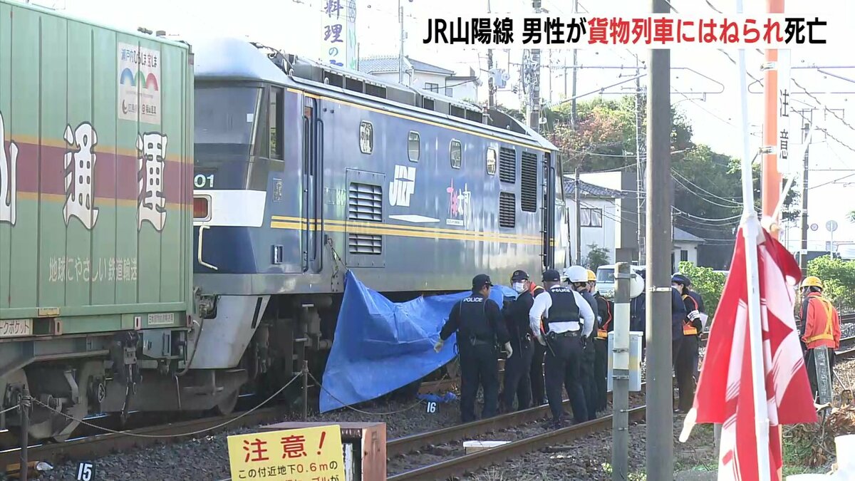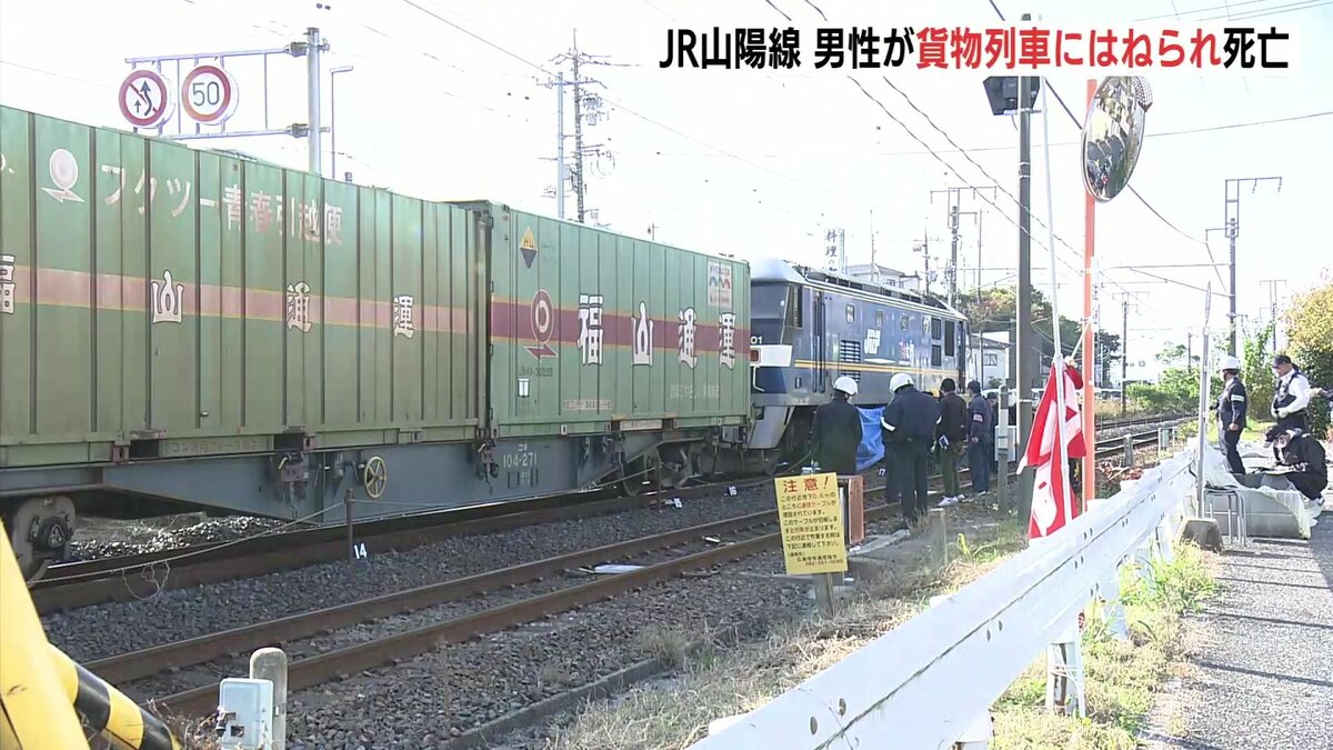 事故があったのは、廿日市市林が原です。JRと警察によりますと、午前7時すぎ「貨物列車が人と接触した」と列車の運転士から通報がありました。ブレーキをかけましたが間に合わず線路内にいた男性をはねたとみられています。はねられたのは成人男性で、現場で死亡が確認されたということです。この事故の影響で、山陽線は、五日市駅と岩国駅の間で、およそ3時間にわたって運転を見合わせていましたが、JR西日本によりますと、午前10時ごろに運転を再開しました。現場は踏切から15メートルほど離れた場所とみられ、警察は身元の特定を進めるとともに、事故の詳しい原因を調べています。