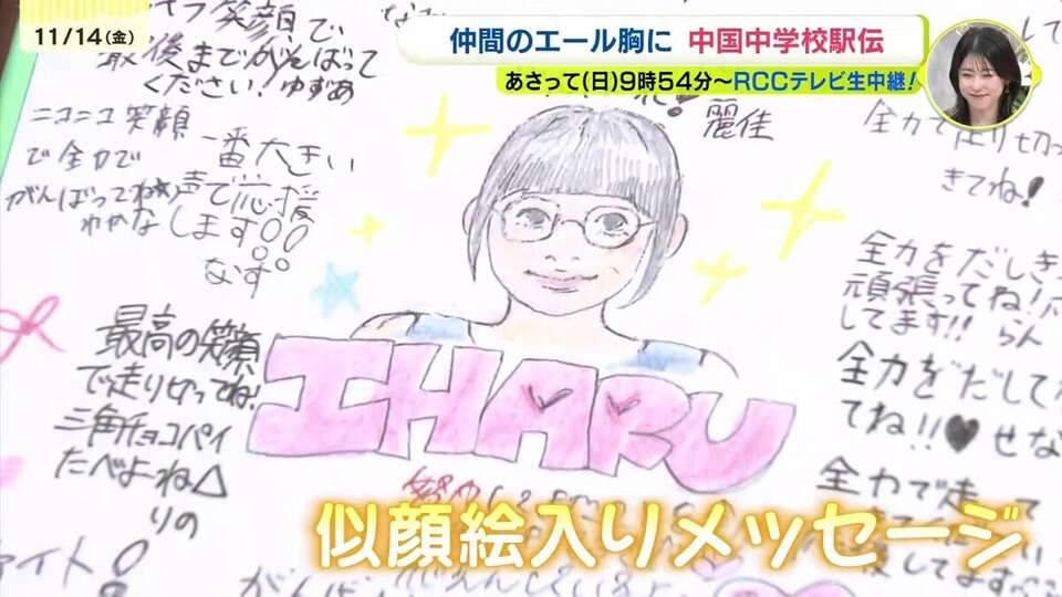 そして大会3日前のこの日、駅伝に出場しない陸上部員たちから似顔絵入りのメッセージが送られました。