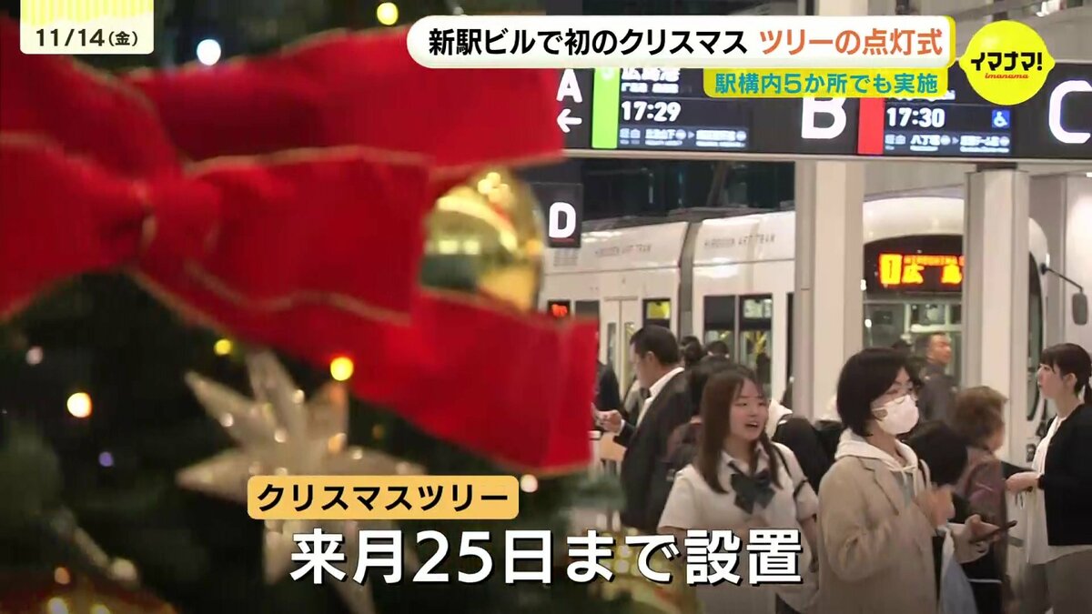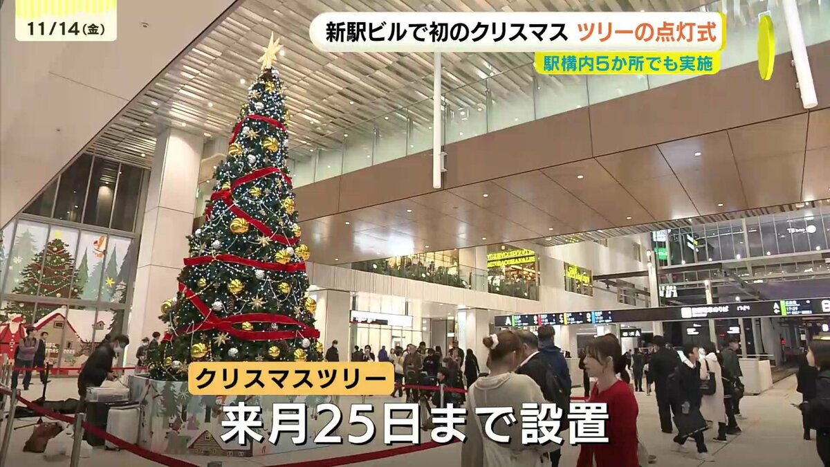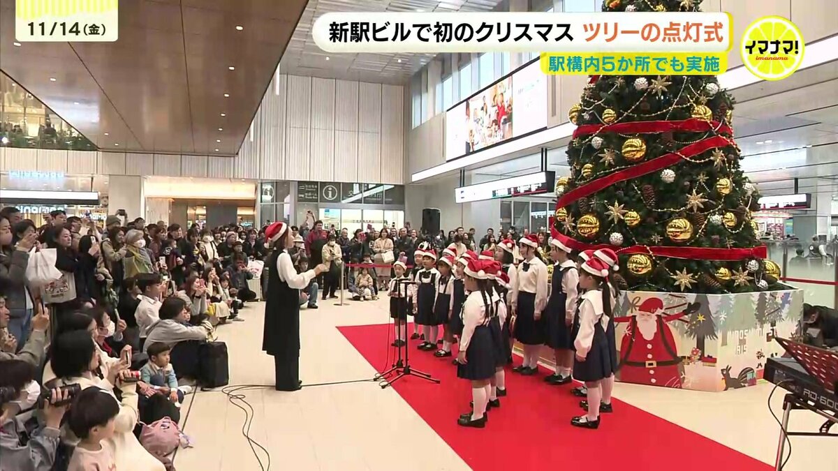 ことし開業した新しい広島駅ビルで、クリスマスツリーの点灯式がありました。