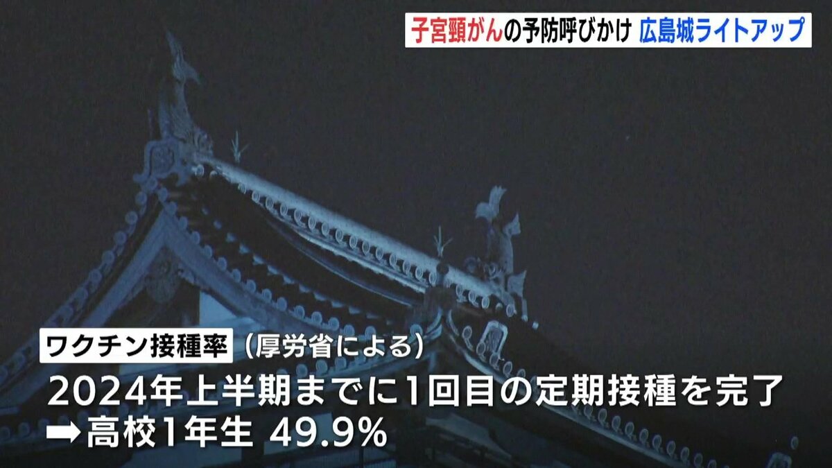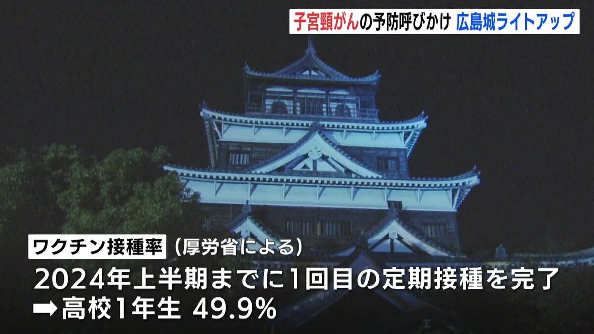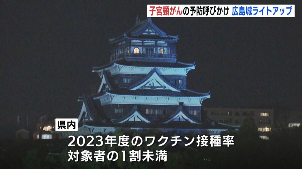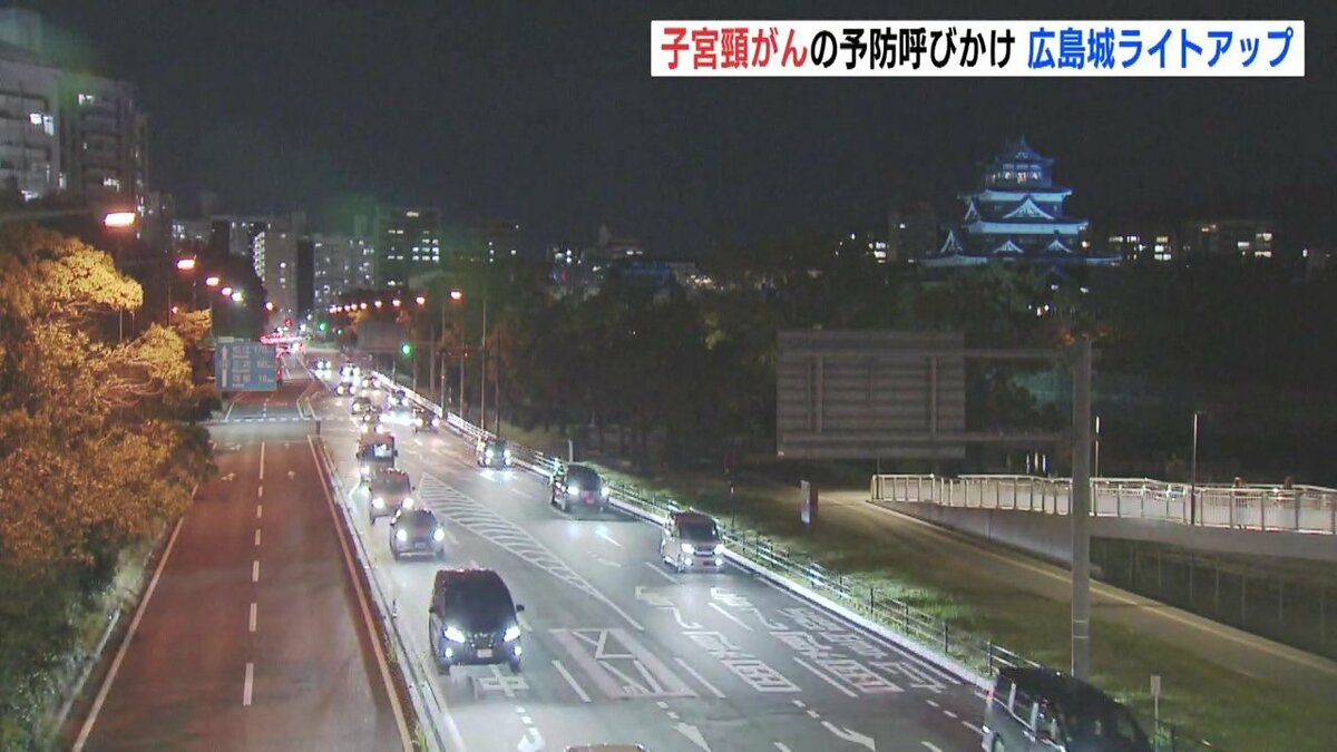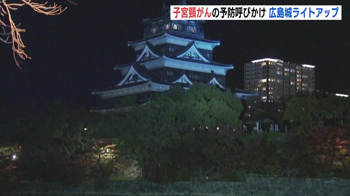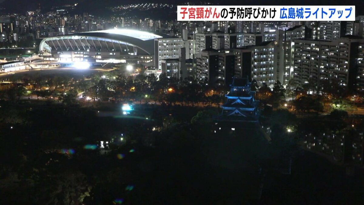 広島市にある広島城が普段とは異なる「ティールブルー」に照らされました。ライトアップは子宮頸がんを予防するためのワクチン接種や検診を呼びかけようと企画されました。