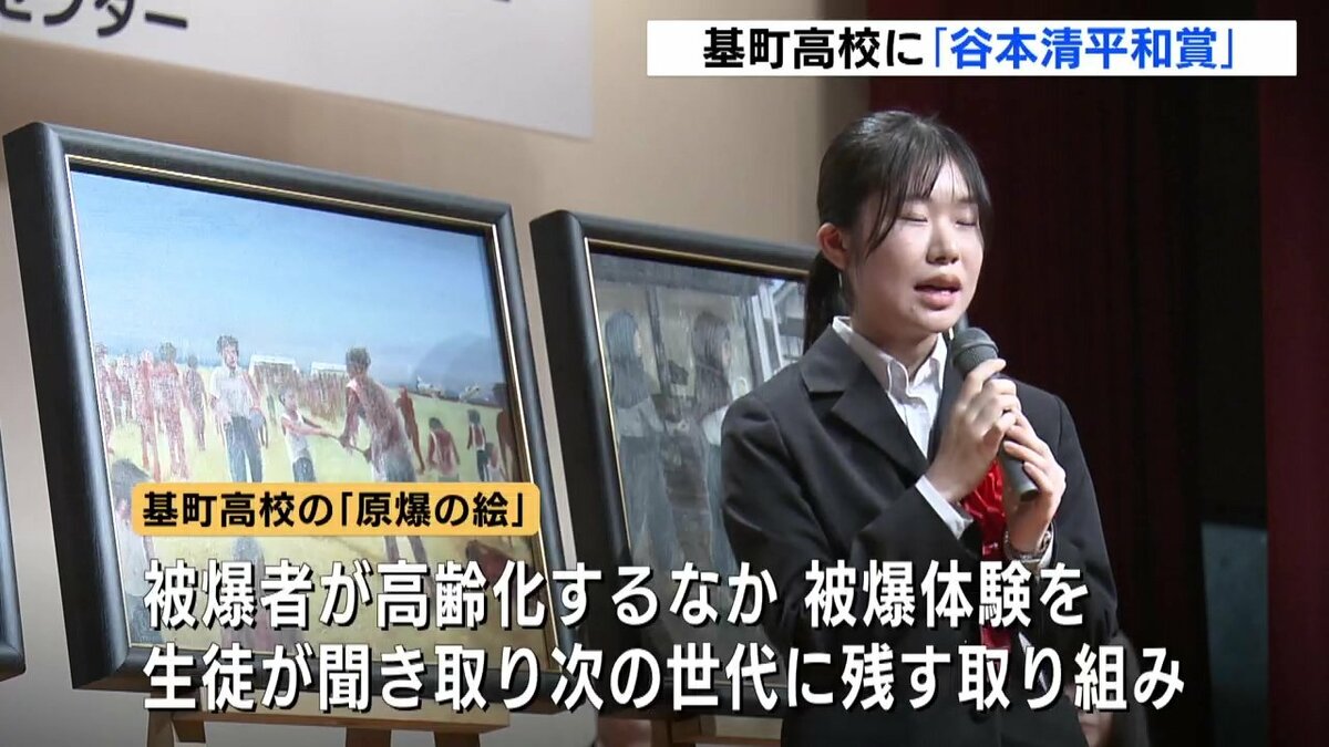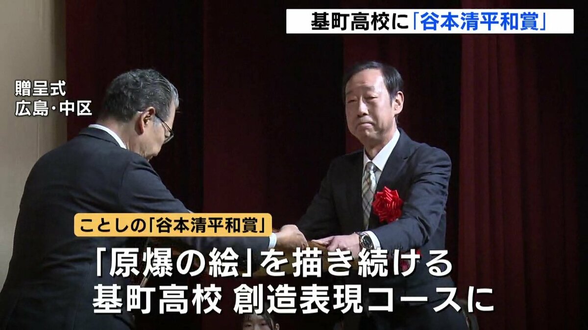 ことしの谷本清平和賞は、「原爆の絵」を描き続けている基町高校創造表現コースに贈られました。この賞は、被爆者支援に尽力した故・谷本清牧師の遺志を継いで1987年に創設され、毎年、平和活動に尽力した人物や団体に贈られています。