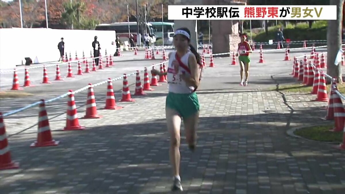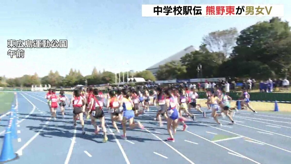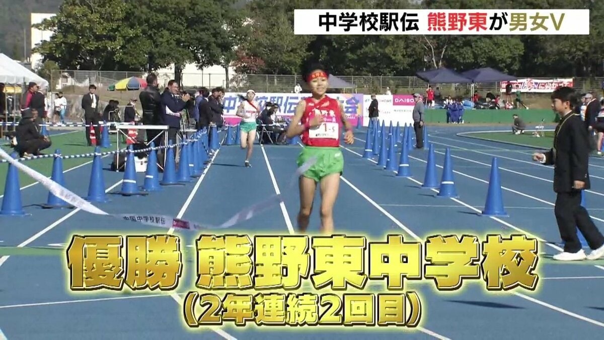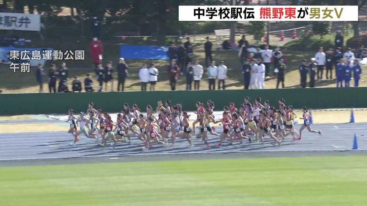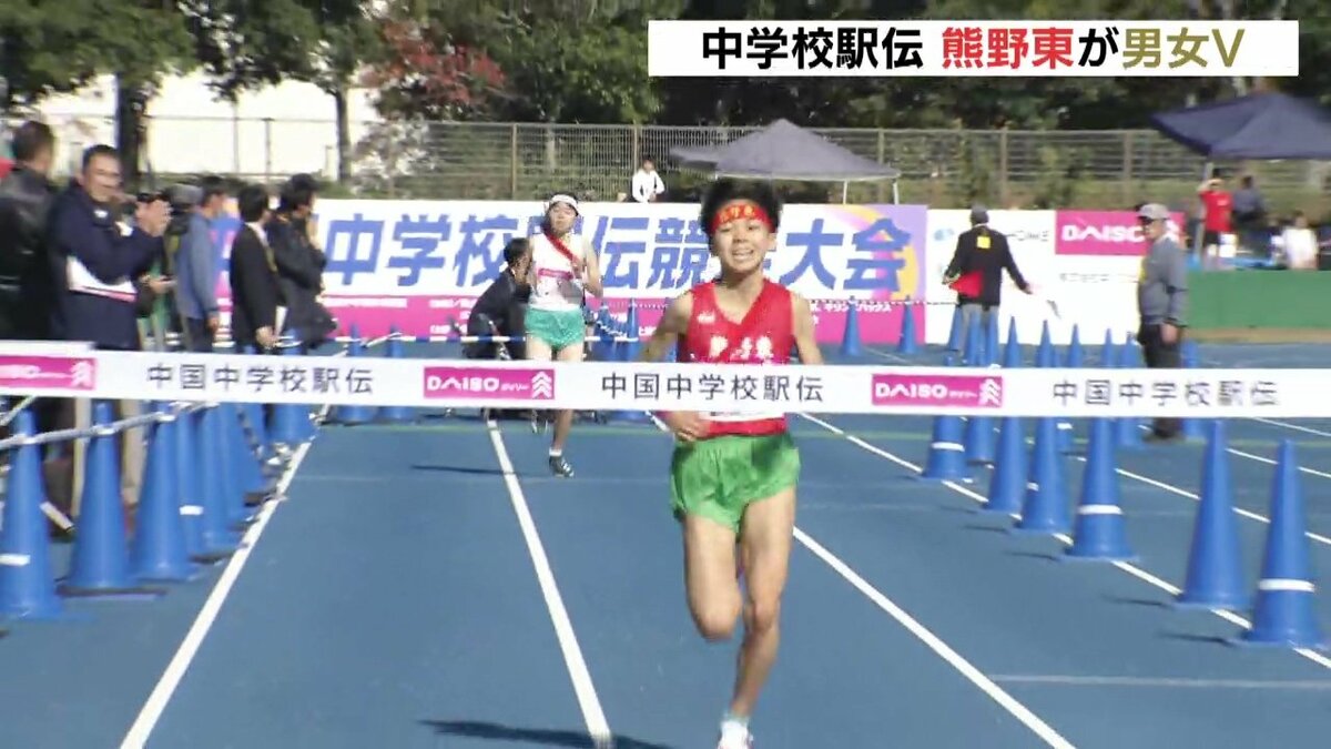 全国大会出場をかけた中国中学校駅伝が16日、東広島市で開かれ、熊野東が男女アベック優勝を果たしました。