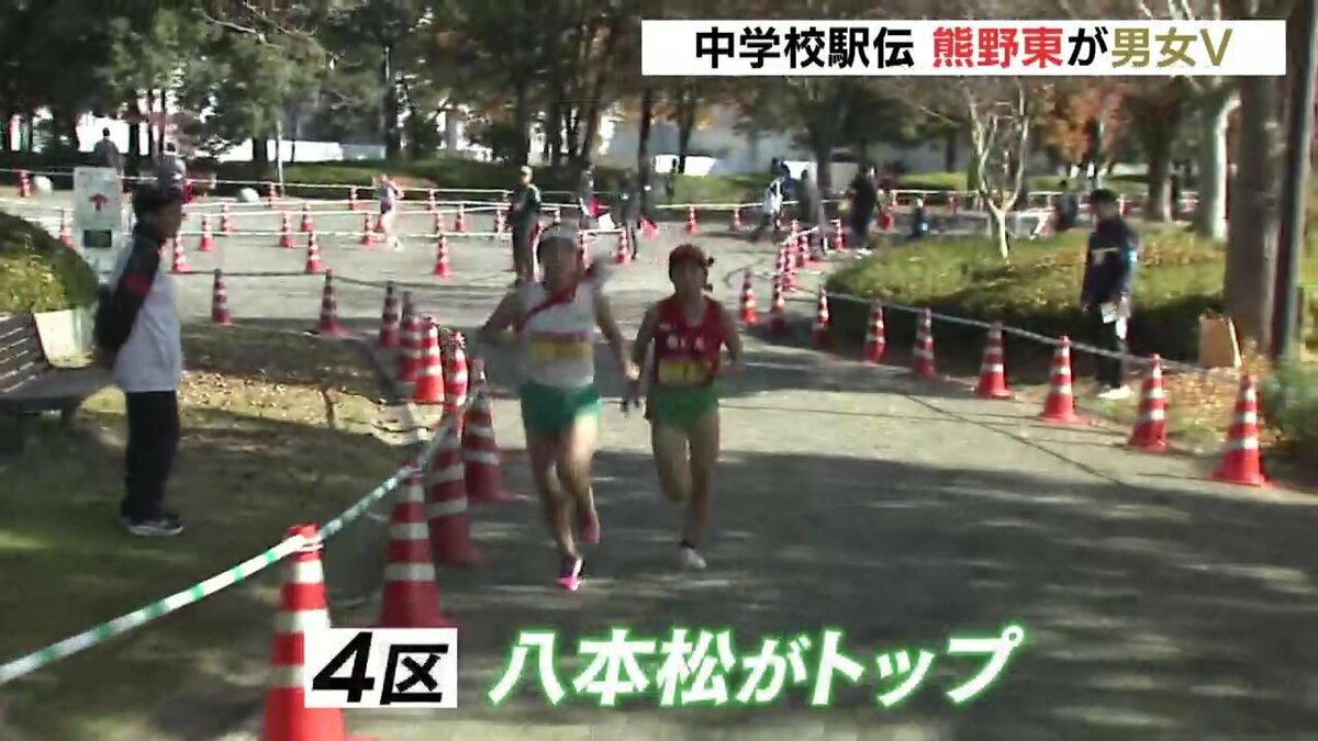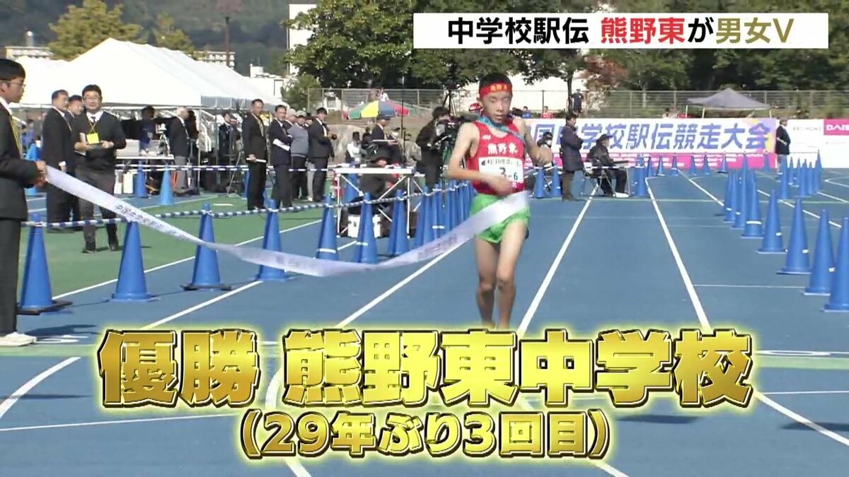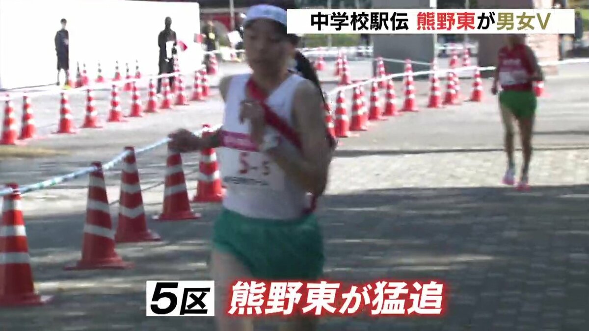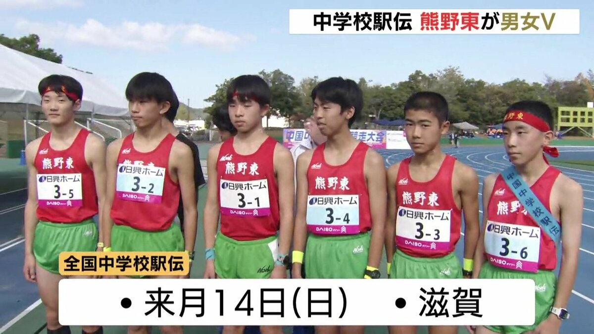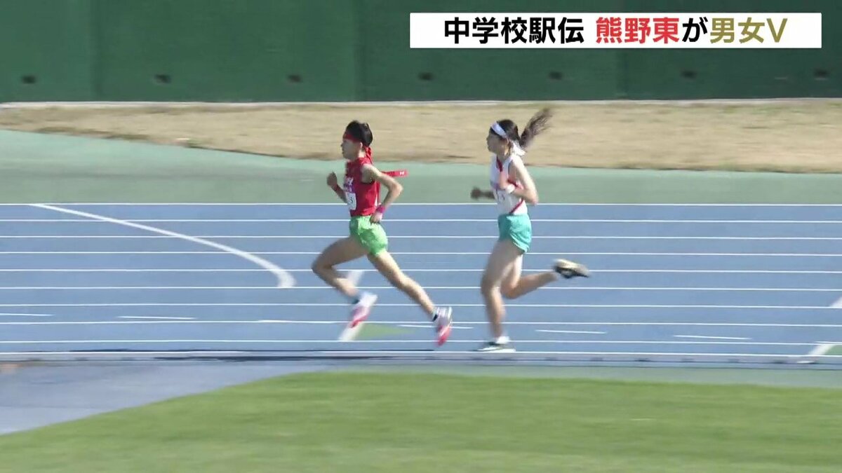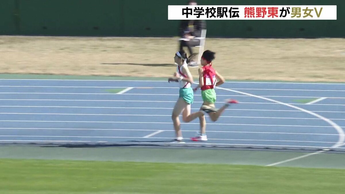 全国大会出場をかけた中国中学校駅伝が16日、東広島市で開かれ、熊野東が男女アベック優勝を果たしました。