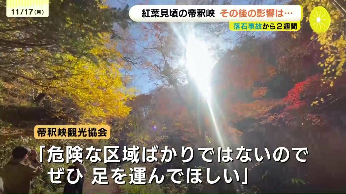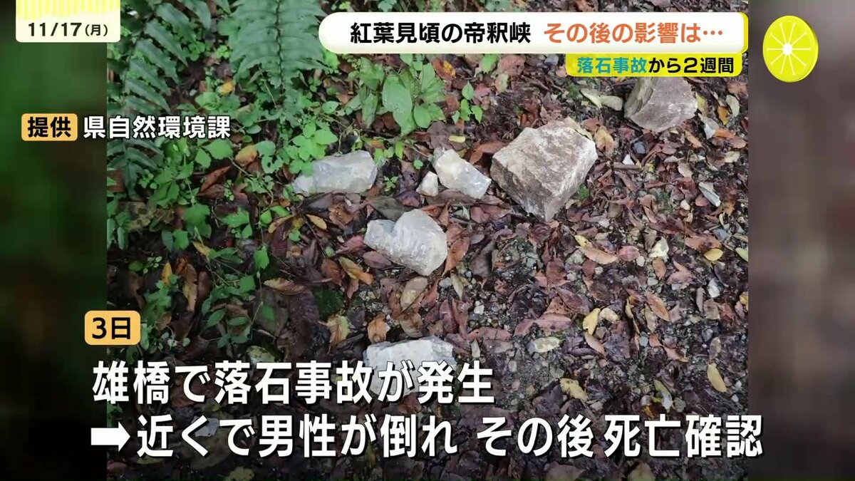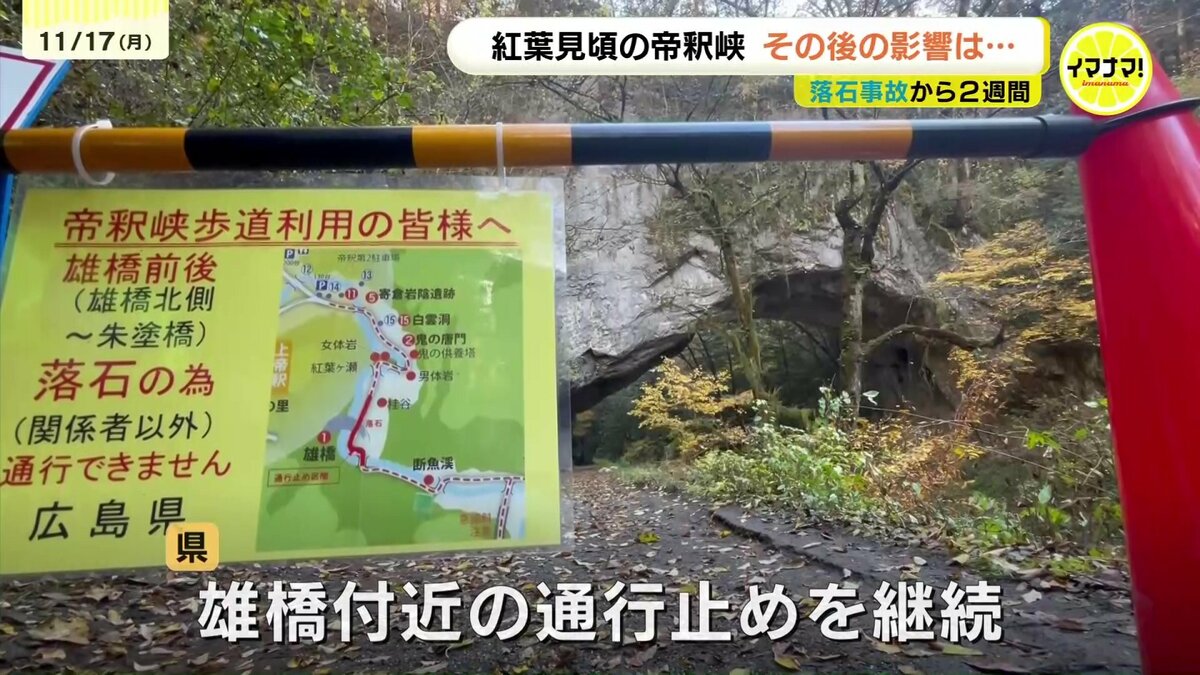 紅葉シーズンを迎える中、大きな打撃を受けている観光名所があります。広島県庄原市と神石高原町にまたがる帝釈峡の遊歩道で起きた落石事故から2週間。その現場を取材しました。