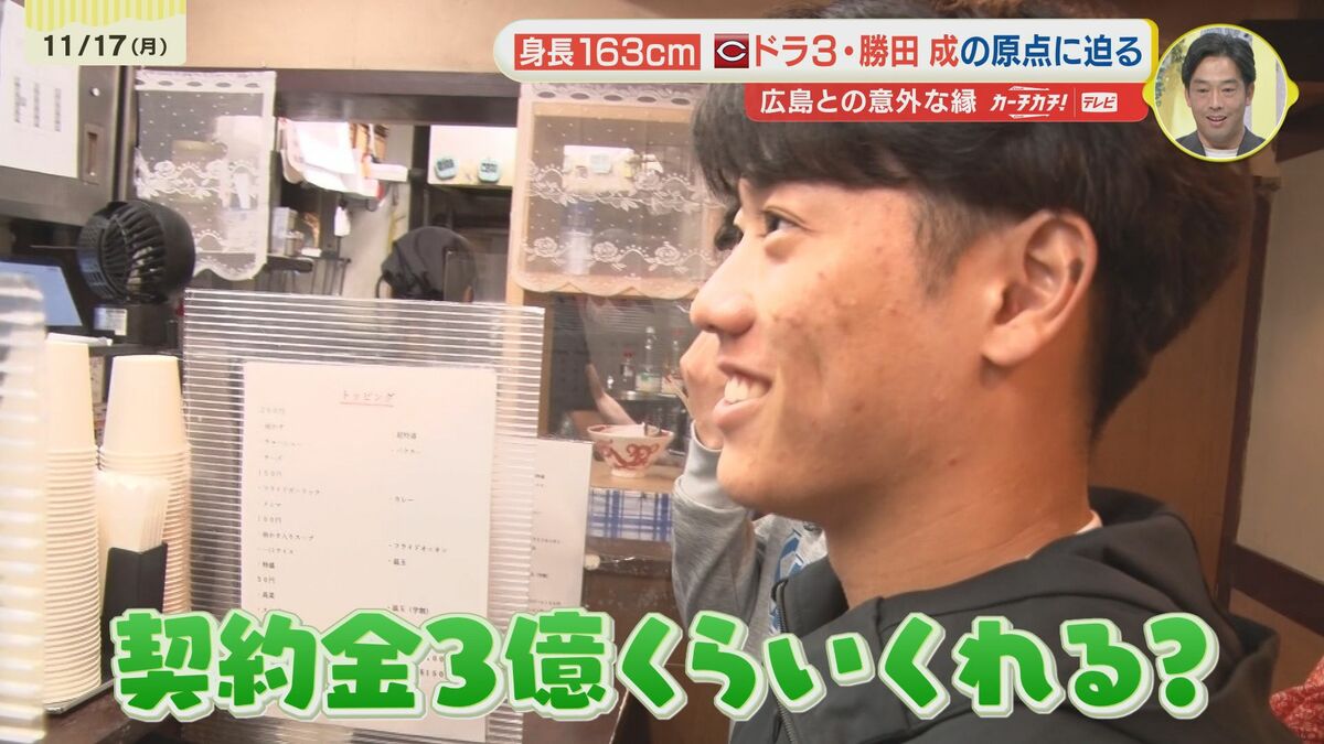 指名される前からすでに広島の味と出会っていたという勝田選手。