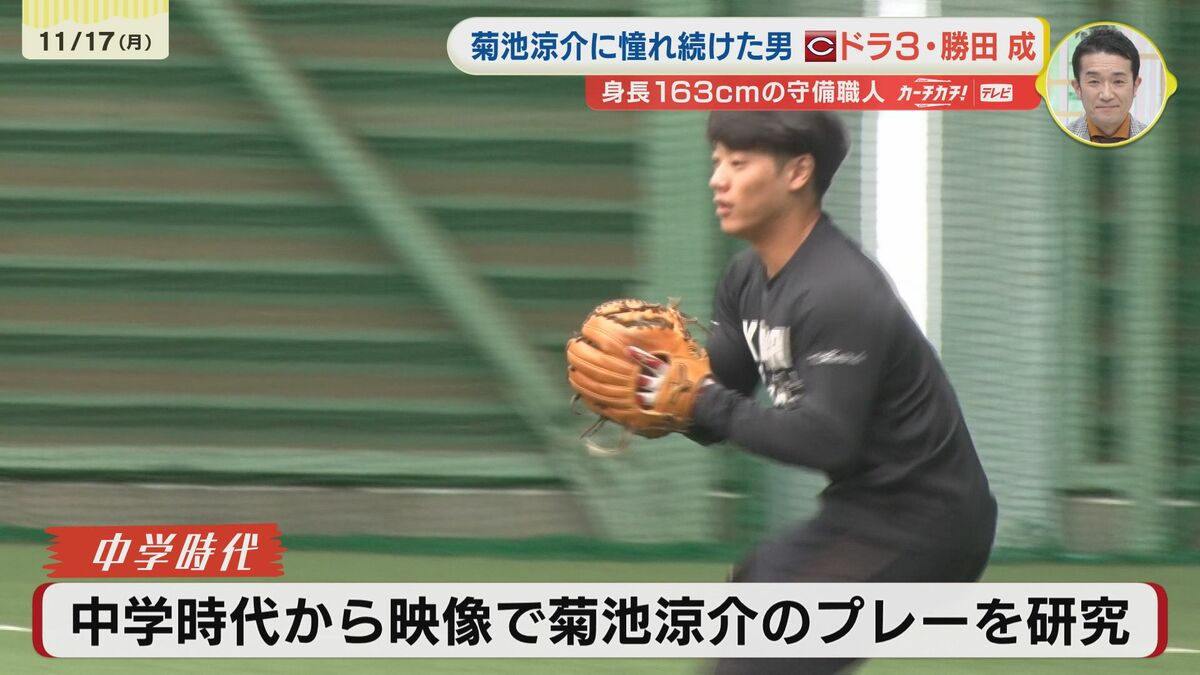 高い守備力を武器にカープからドラフト3位で指名された近畿大学の勝田成。