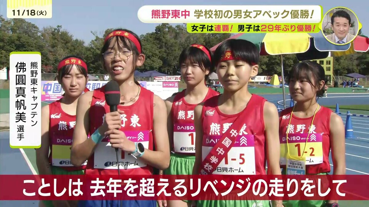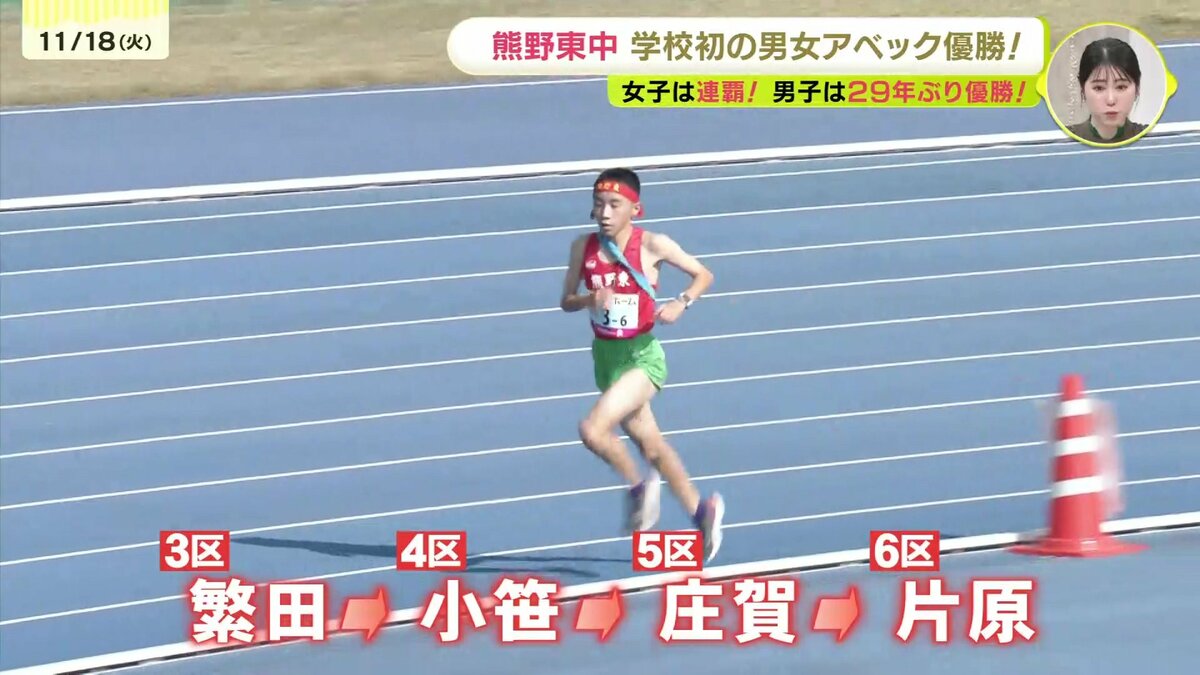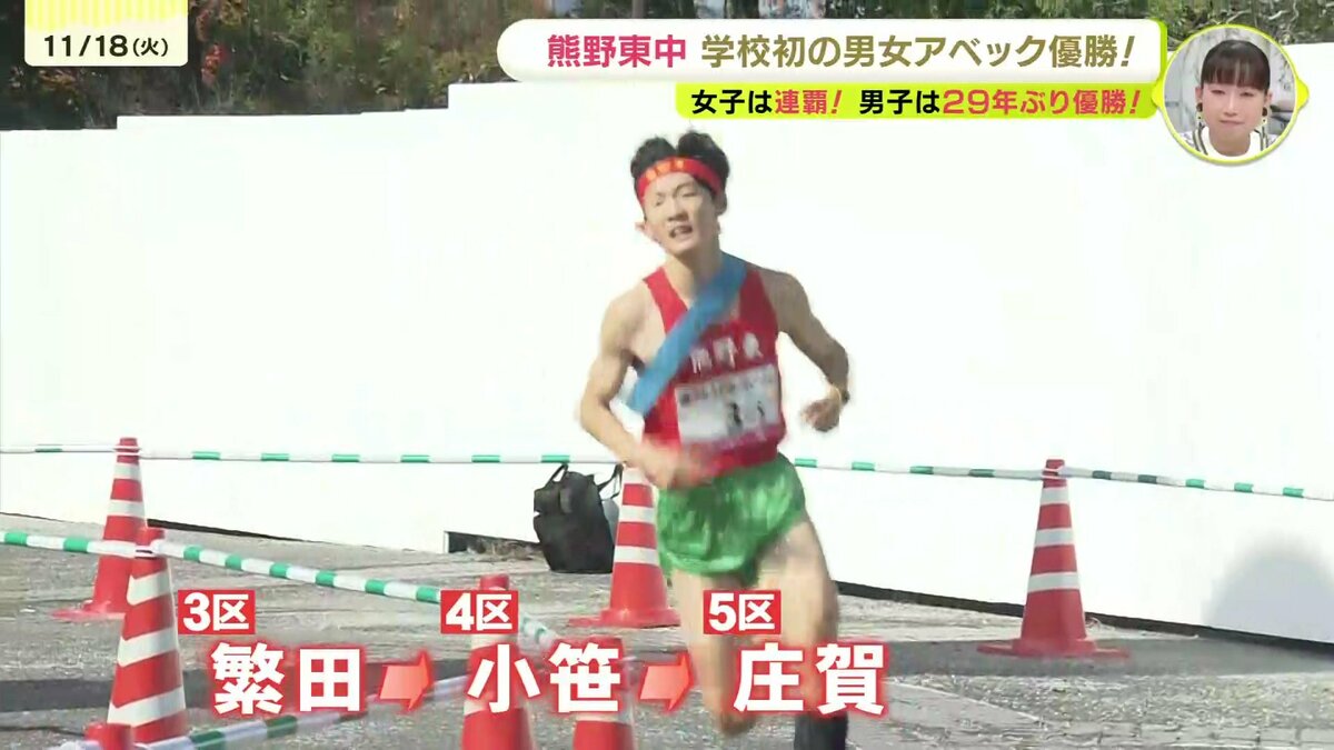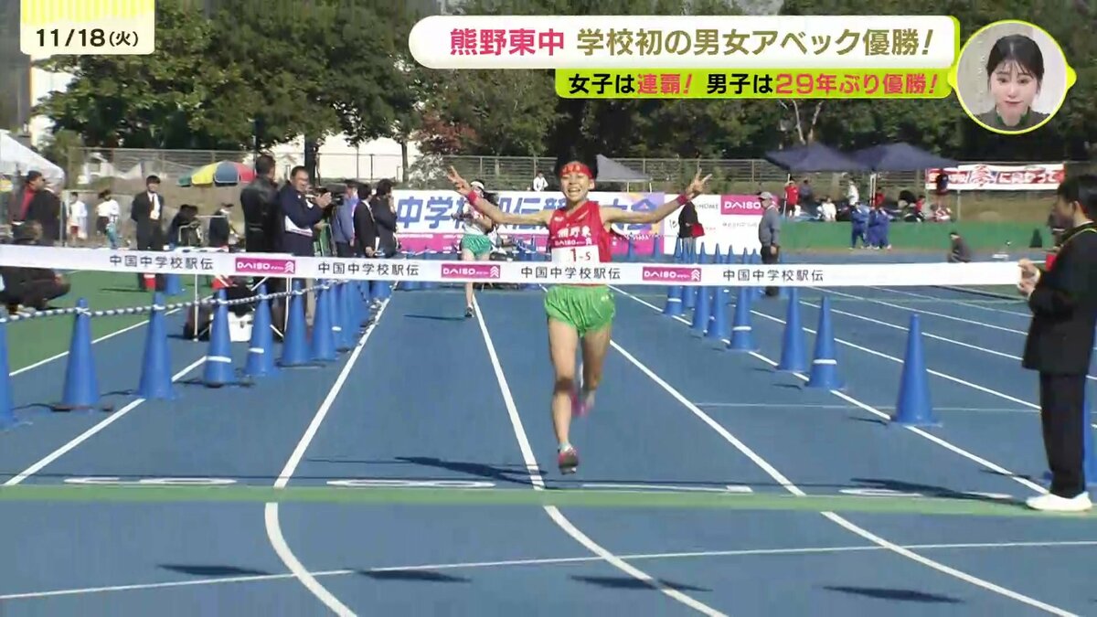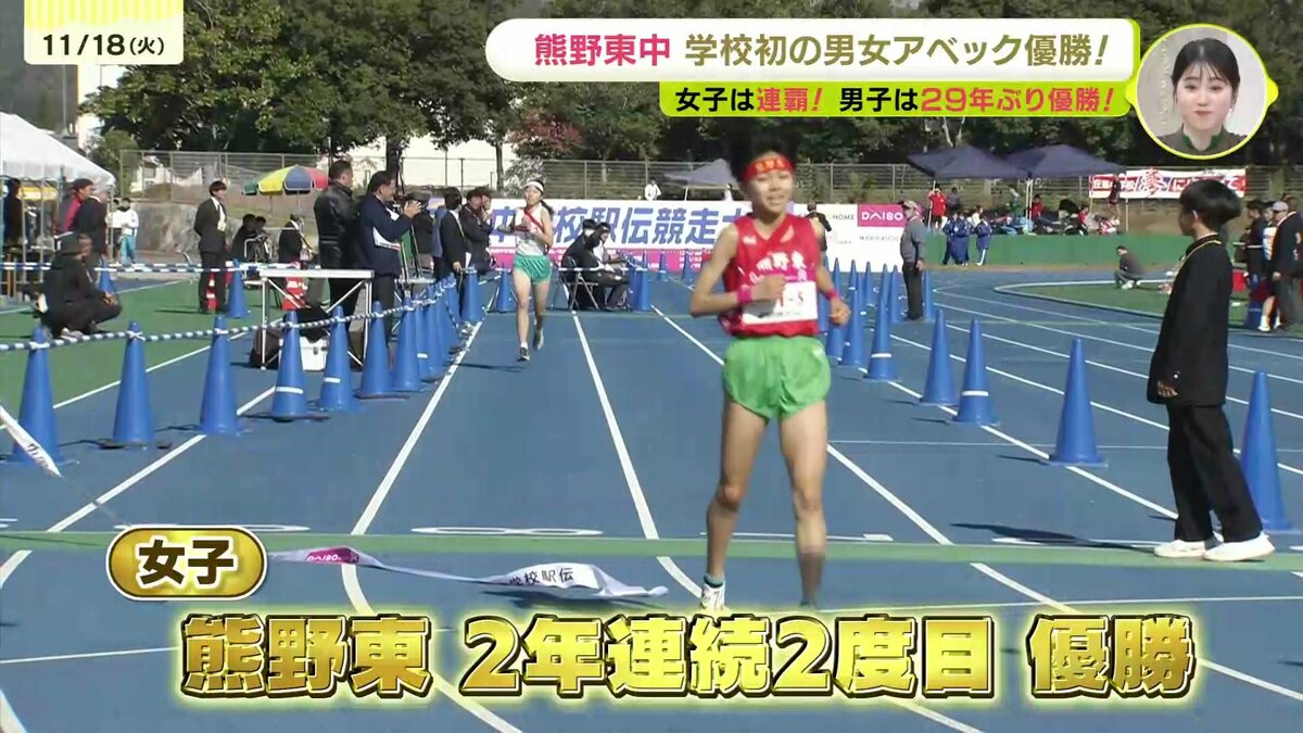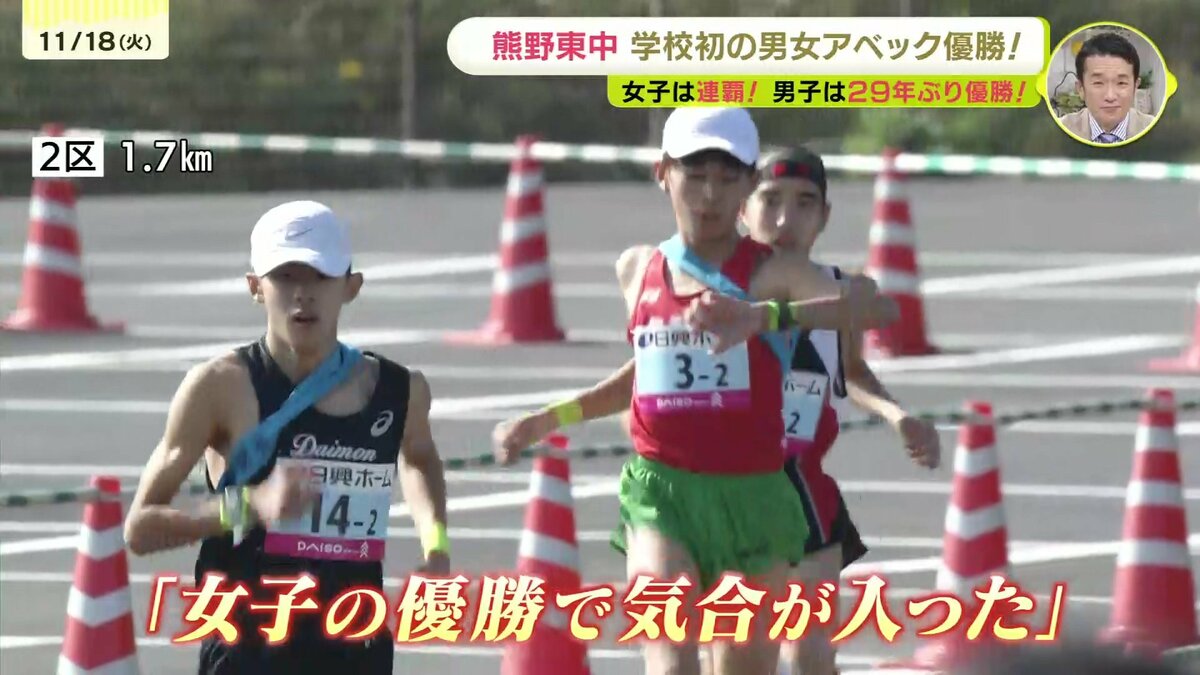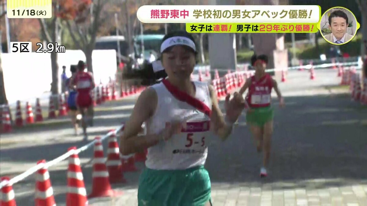 熊野東はその後も、各区間、上位のタイムでたすきを繋ぐ快走。最後まで盤石の走りを見せた男子は29年ぶり3度目の優勝しました。