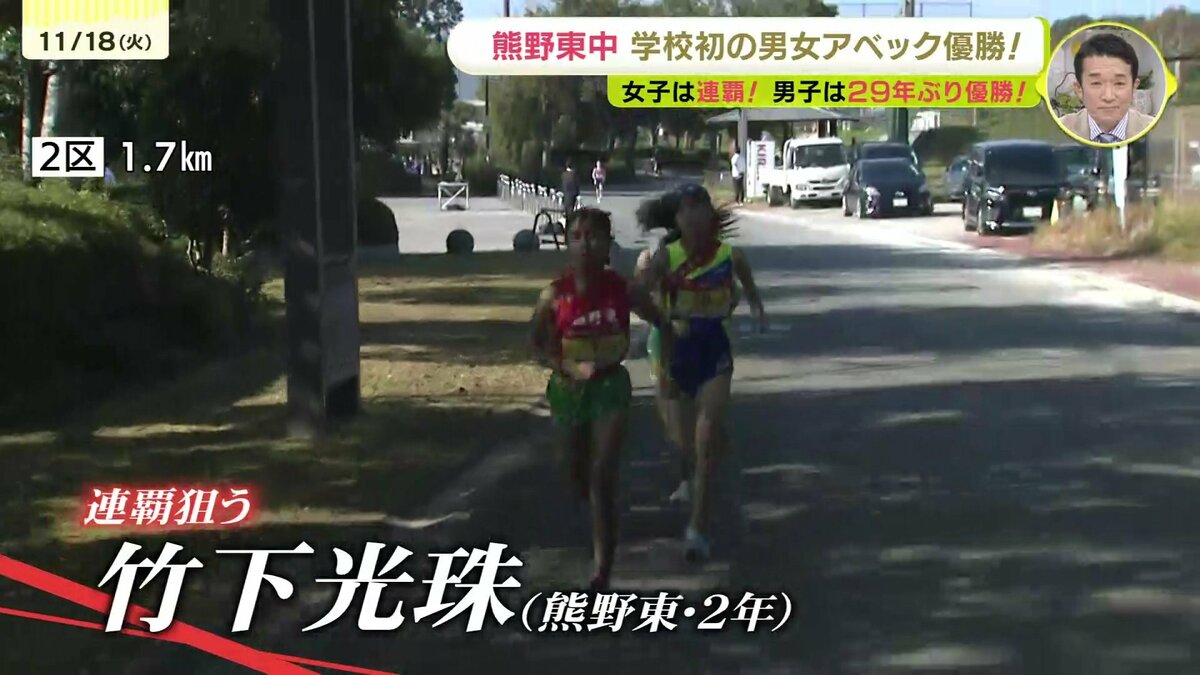 2区では、その熊野東の竹下光珠が区間賞の活躍でトップに躍り出ます。
