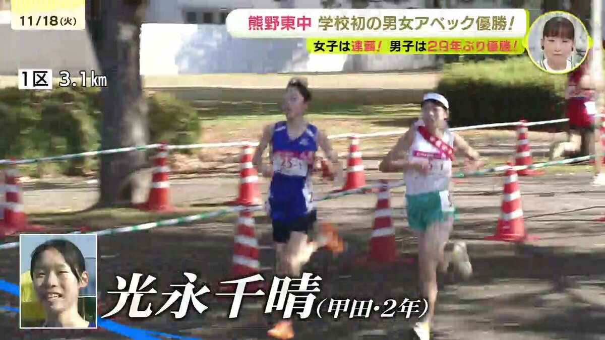エースが集う1区では甲田の2年生・光永千晴が最終盤の追い上げで見事、区間賞を獲得。