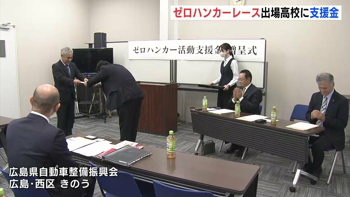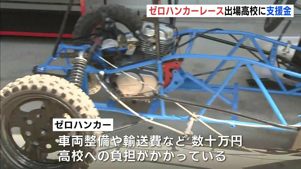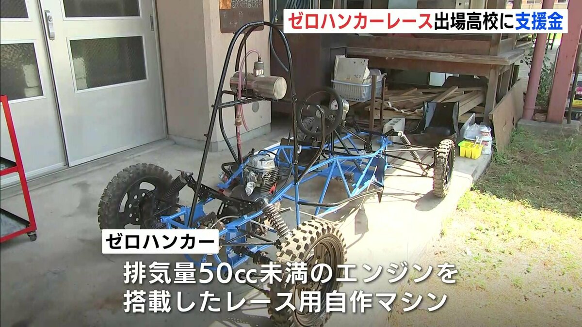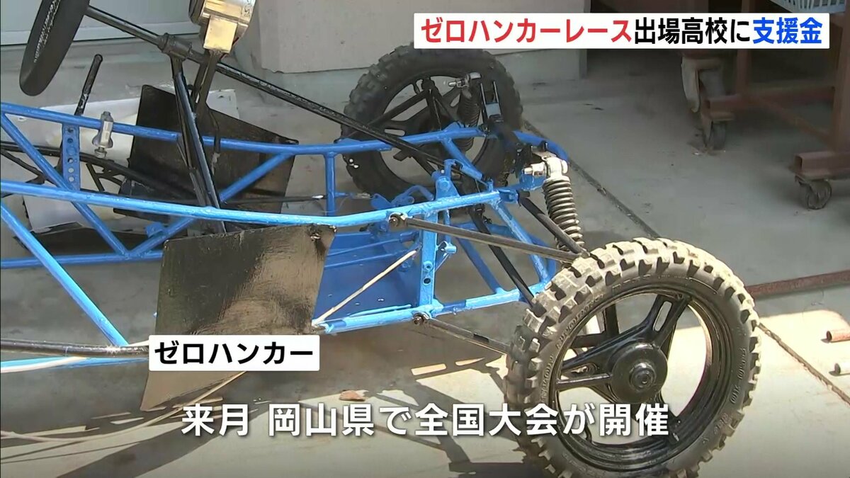 「ゼロハンカー」とは排気量50CC未満のエンジンを搭載したレース用の自作マシンで、12月、岡山県で全国大会が開催されます。ただ、車両の整備や輸送費などに数十万円の費用がかかり、高校への負担がかかっています。そこで3団体は次世代の自動車業界を担う若者を応援しようと支援を決めました。