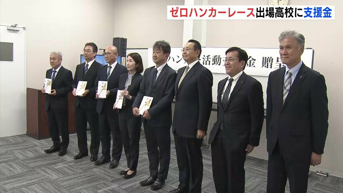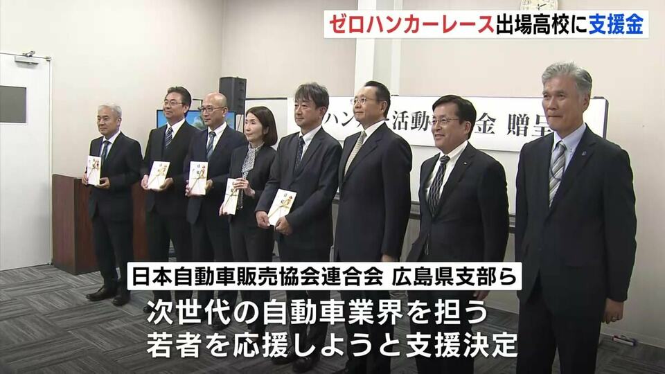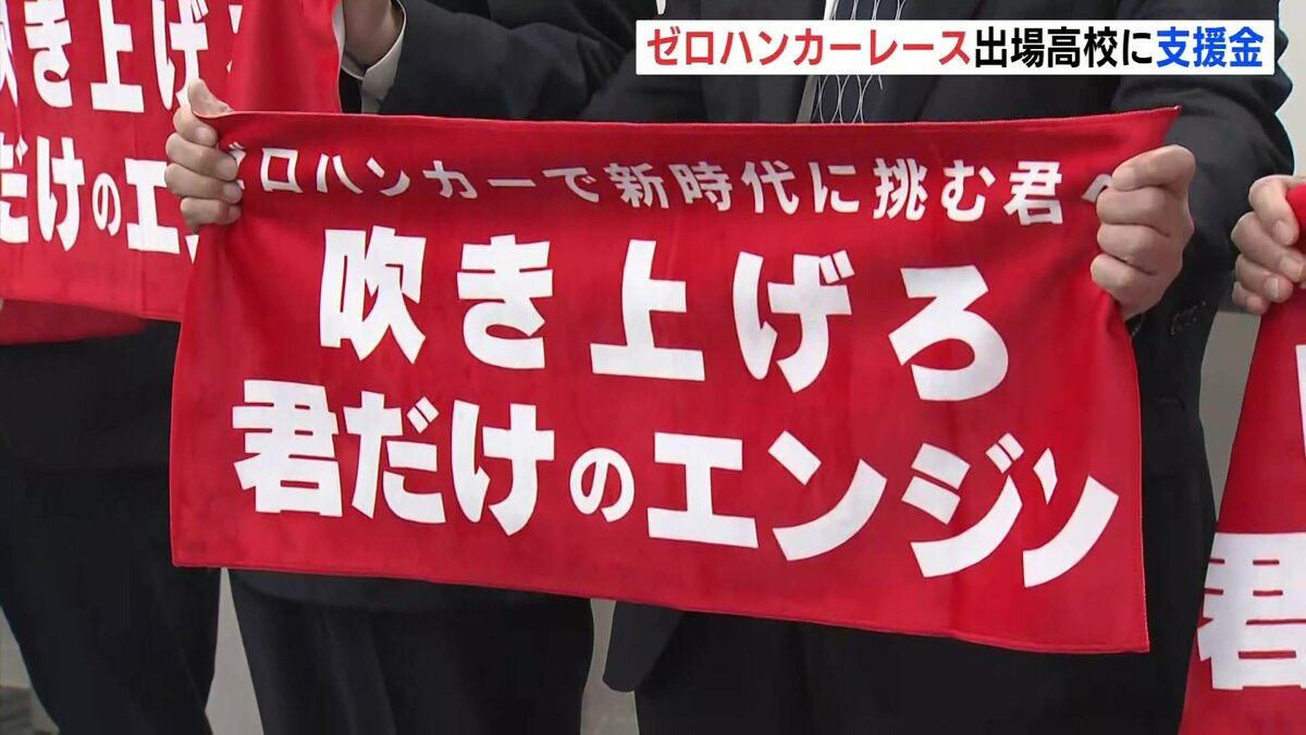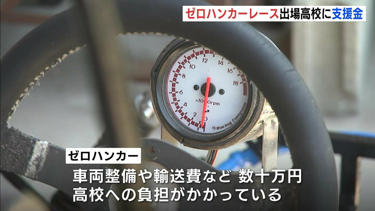 「ゼロハンカー」とは排気量50CC未満のエンジンを搭載したレース用の自作マシンで、12月、岡山県で全国大会が開催されます。ただ、車両の整備や輸送費などに数十万円の費用がかかり、高校への負担がかかっています。そこで3団体は次世代の自動車業界を担う若者を応援しようと支援を決めました。