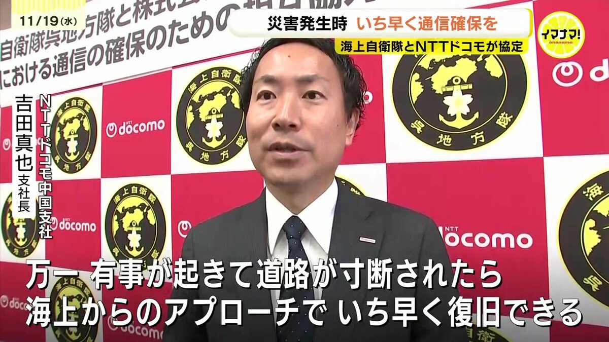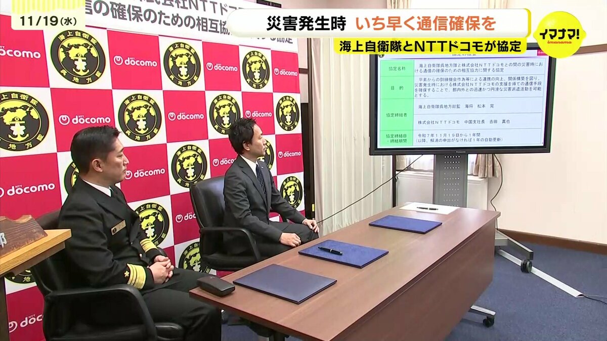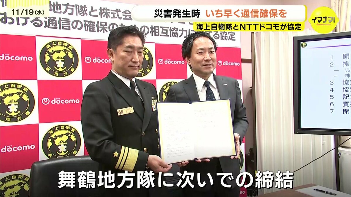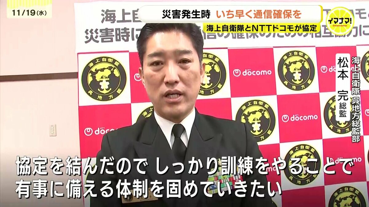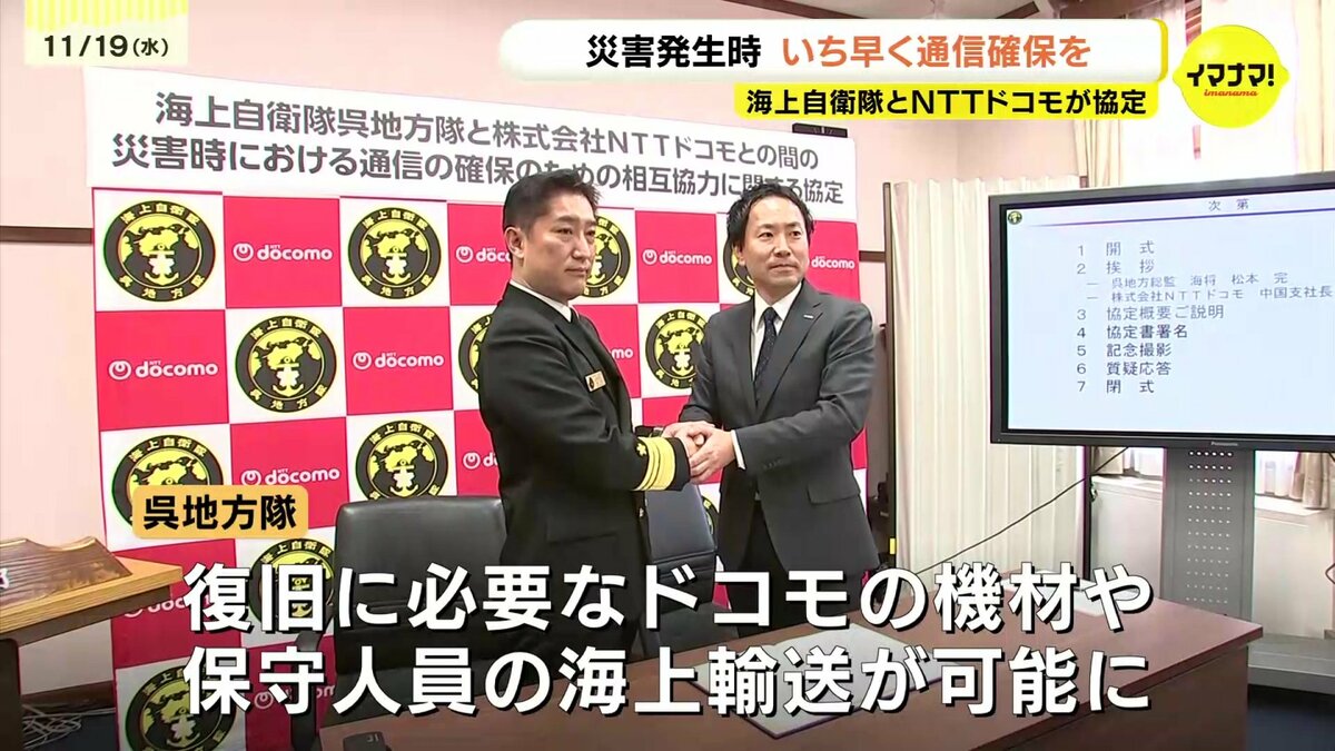 海上自衛隊呉地方隊とNTTドコモは、災害発生時に連携して通信の確保を行う協定を結びました。