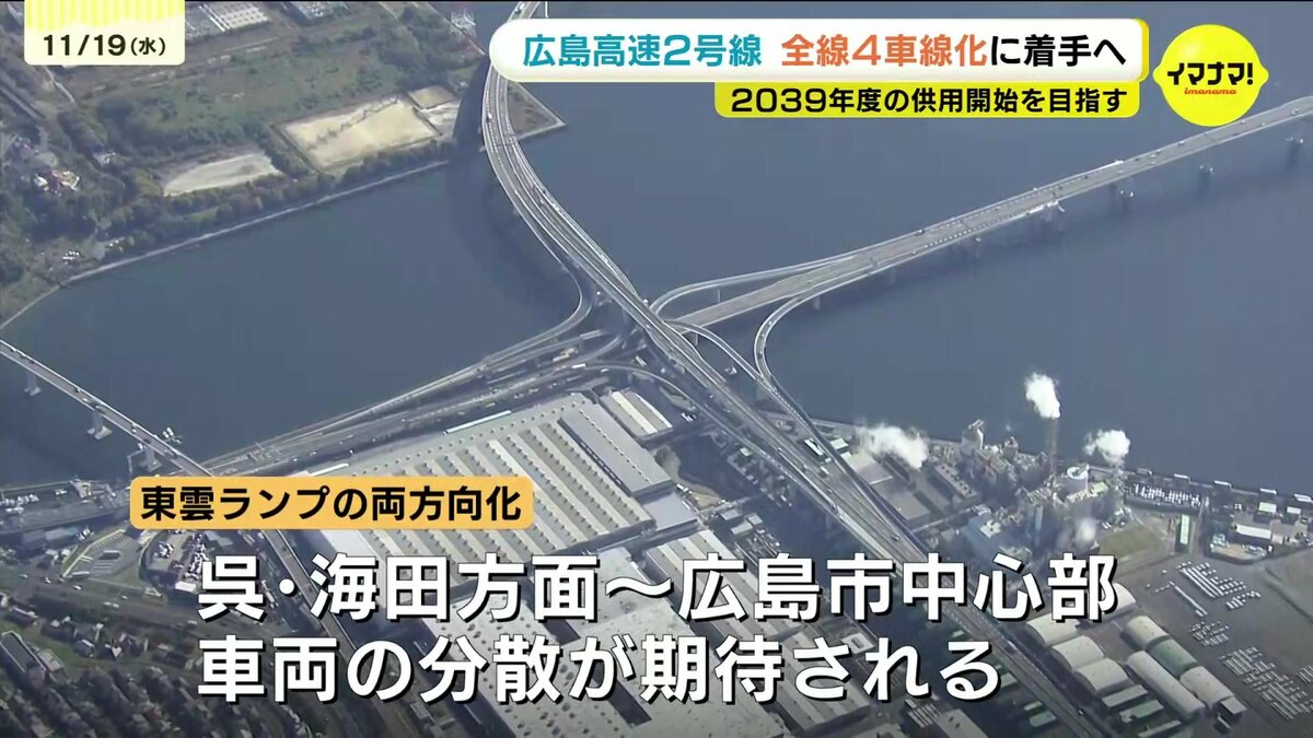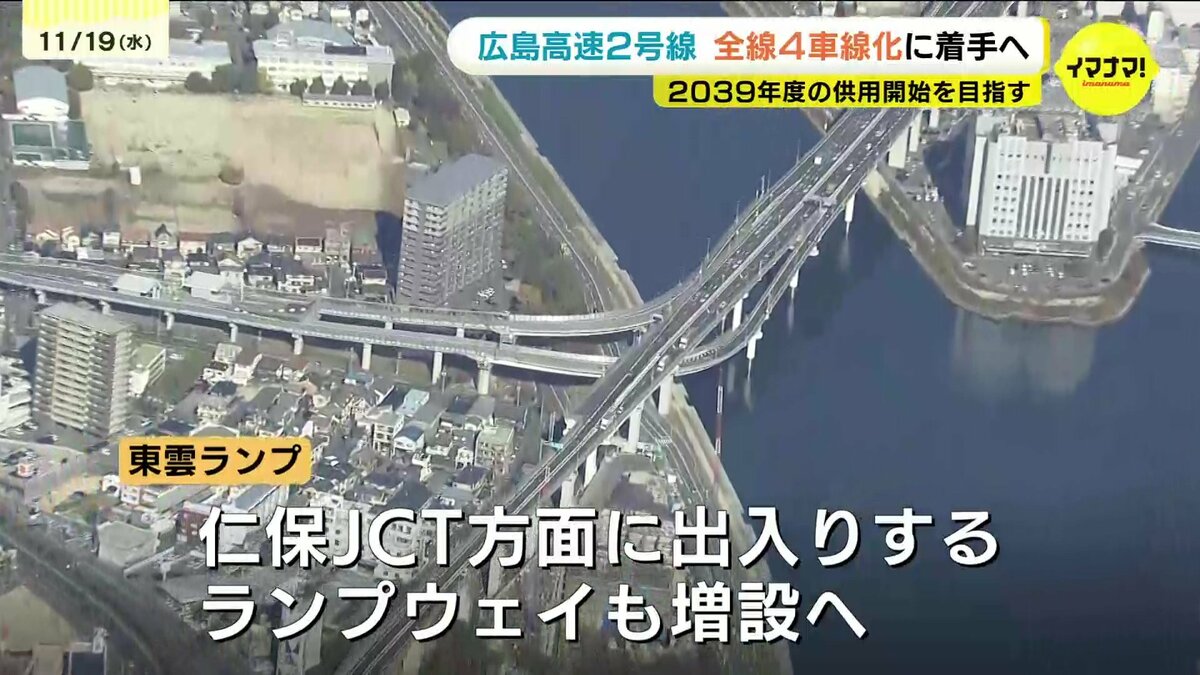 広島高速道路公社が、高速2号線の全線で4車線化に着手し、東雲ランプを両方向にする方針を固めたことがわかりました。