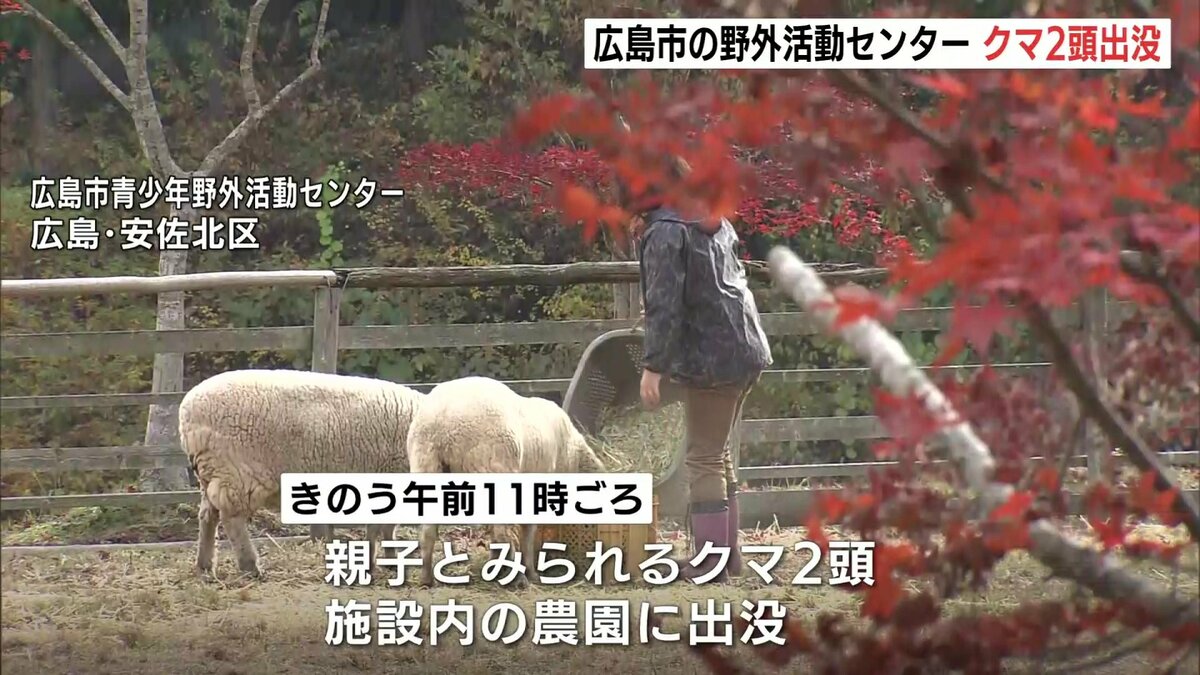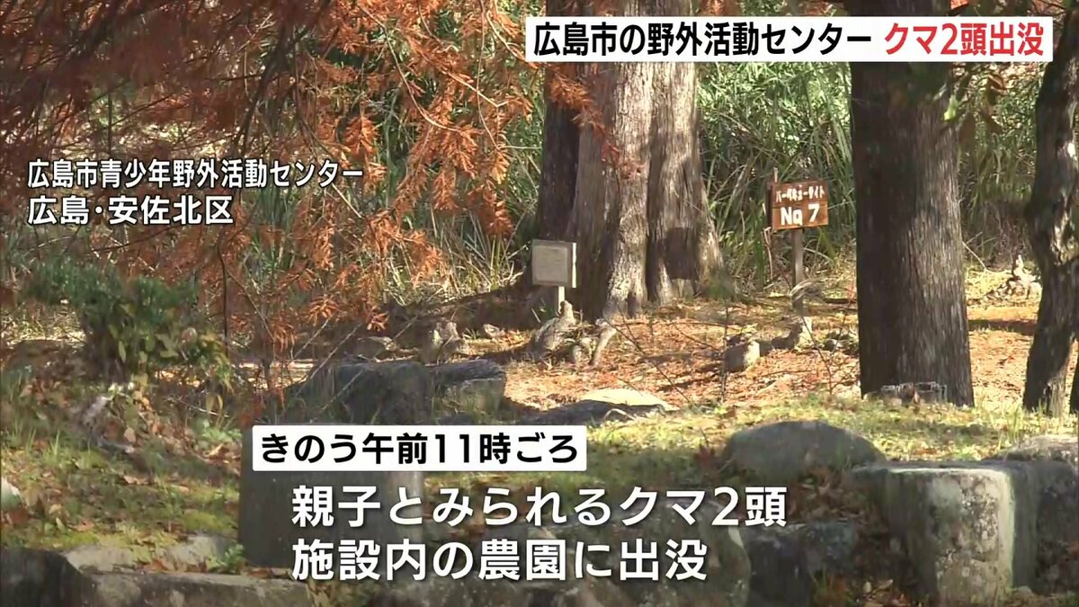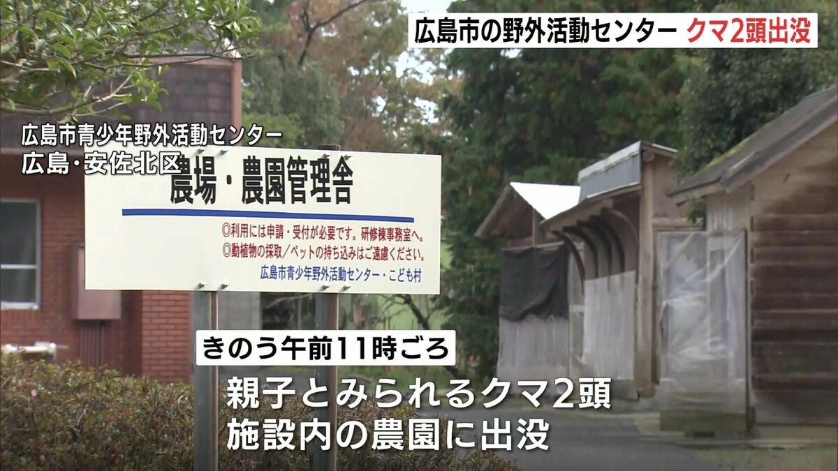 広島市青少年野外活動センターによりますと、19日午前11時ごろ施設内の農園に親子とみられるクマ2頭が出没しました。