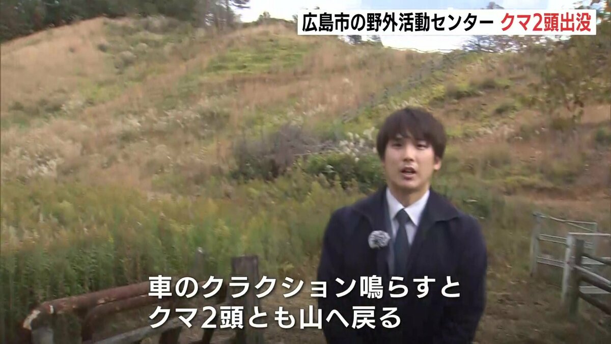 「女性スタッフがあちらの斜面の上の方で子グマを発見し、追い払おうとして車のクラクションを鳴らしたということです。すると親グマも姿を現しましたが、2頭揃って山に戻っていったということです」