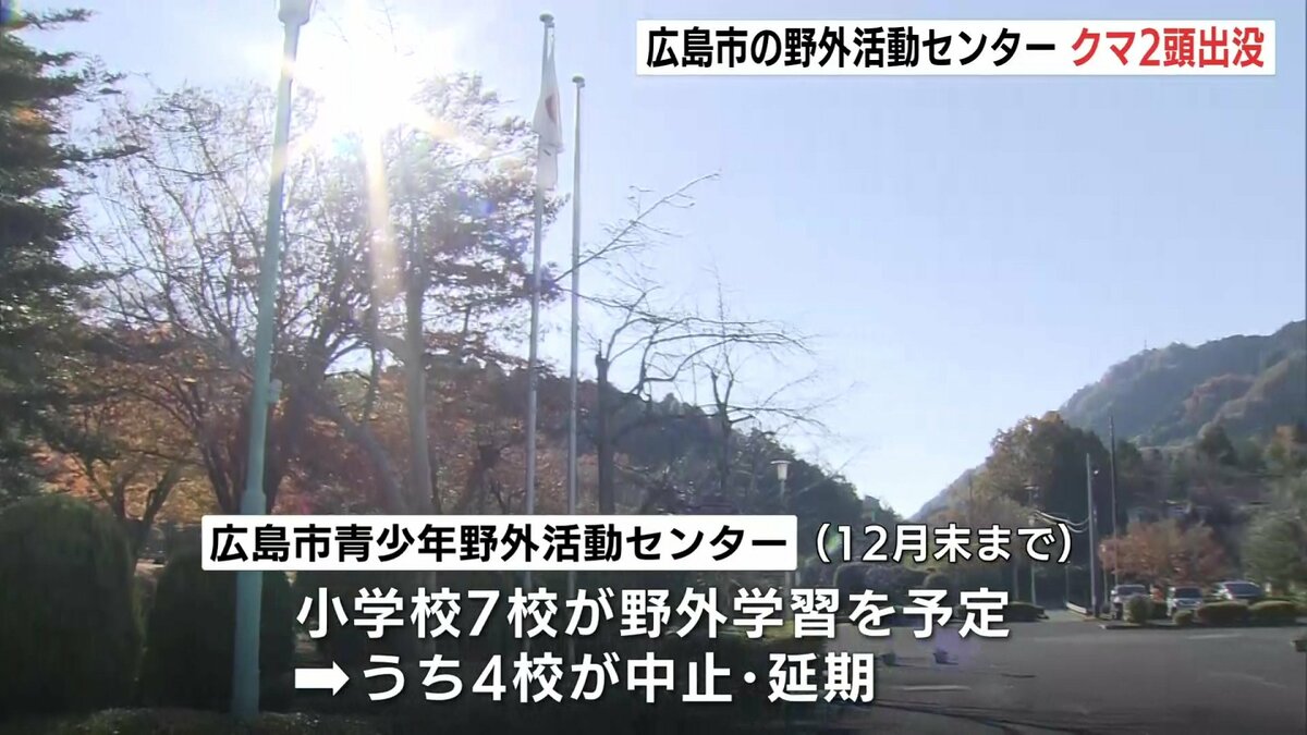 19日広島市の野外活動センターで、クマ2頭が出没しました。この影響で小学校の野外学習の中止や延期が相次いでいます。