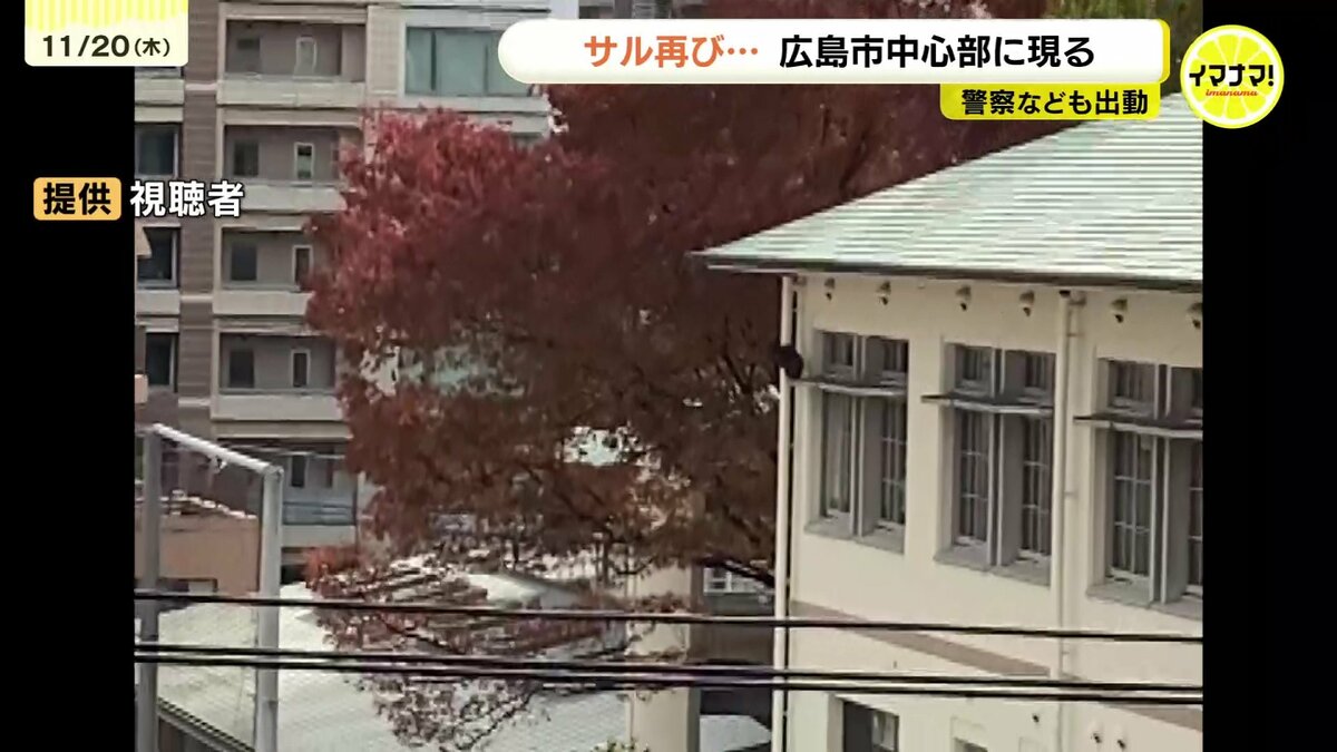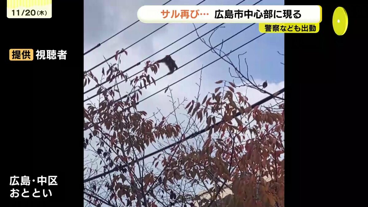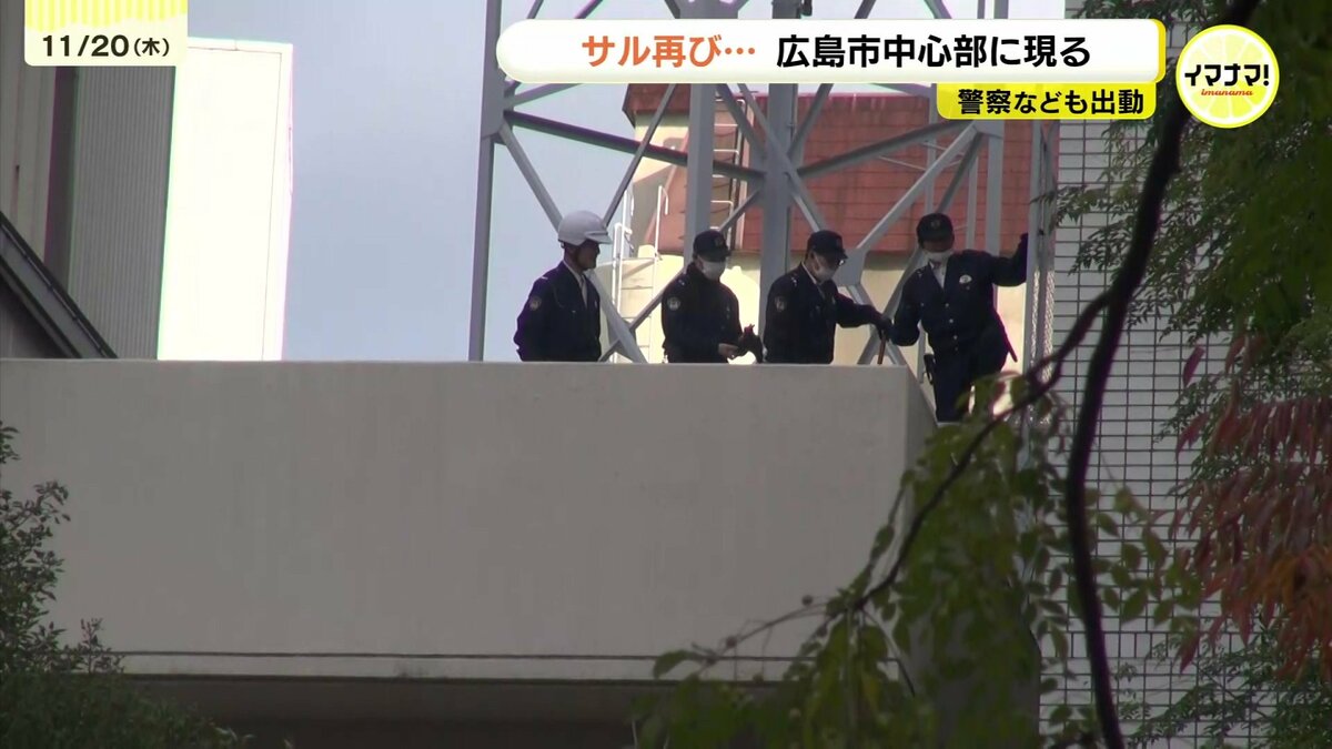 広島市中心部に20日、再びサルが現れました。警察などが出動する騒ぎとなった18日と同じサルとみられています。