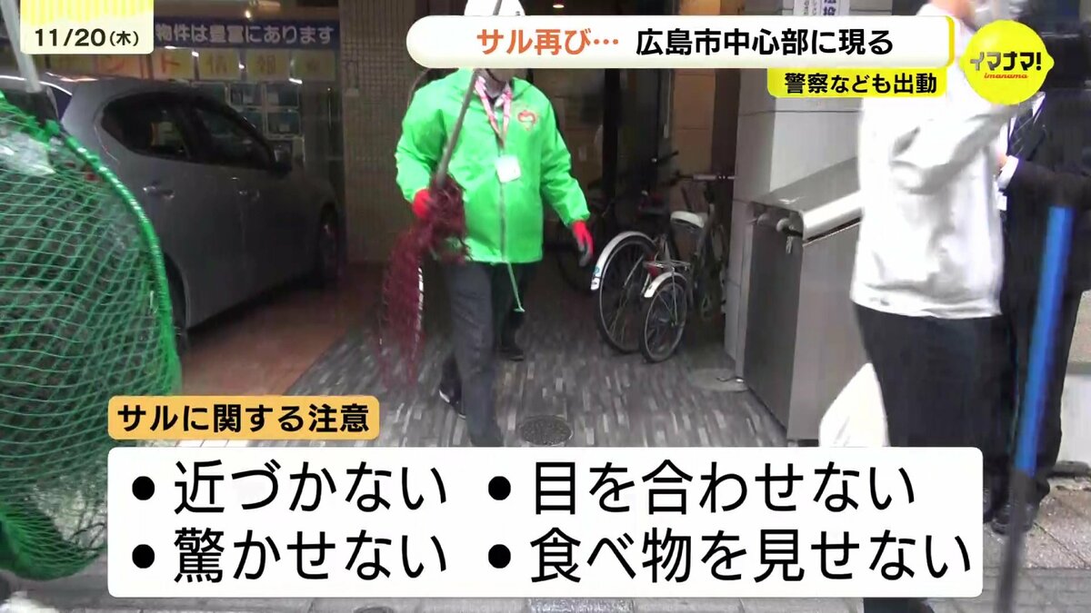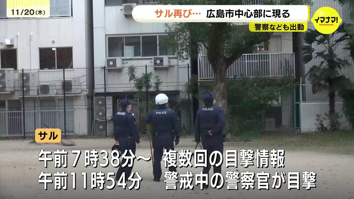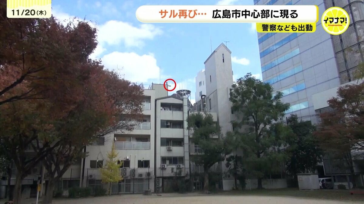 この付近では、18日にも、朝から中学校や縮景園に断続的にサルが出没し、警察官や中区役所職員が出動する騒ぎとなっていました。元々はサルが棲息するエリアではないことから、20日のサルも同一の個体だとみられています。