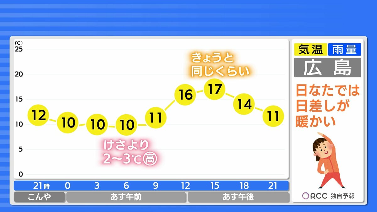 最低気温は、けさよりも2℃~3℃ほど高くなりますが、引き続き暖かくしてお休みください。