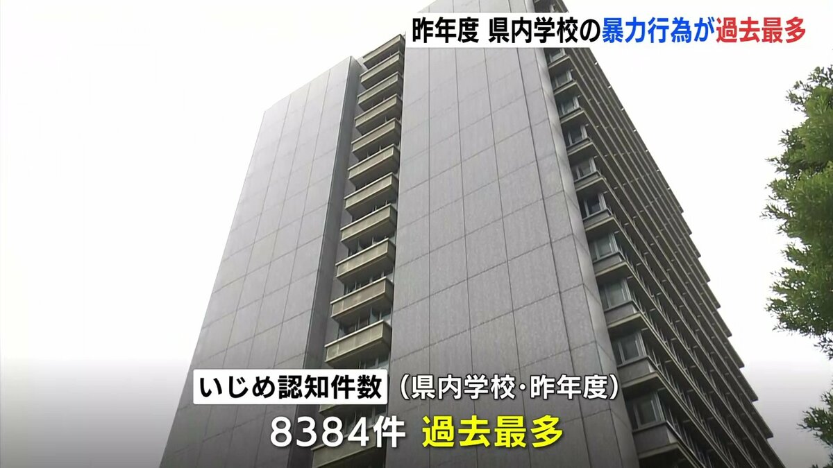 また、いじめの認知件数も8384件で、過去最多でした。これについて県教委では認知件数は増加しているものの、学級担任による発見や教職員への相談が増えていることなどから、積極的な認知につながっている結果だとしています。