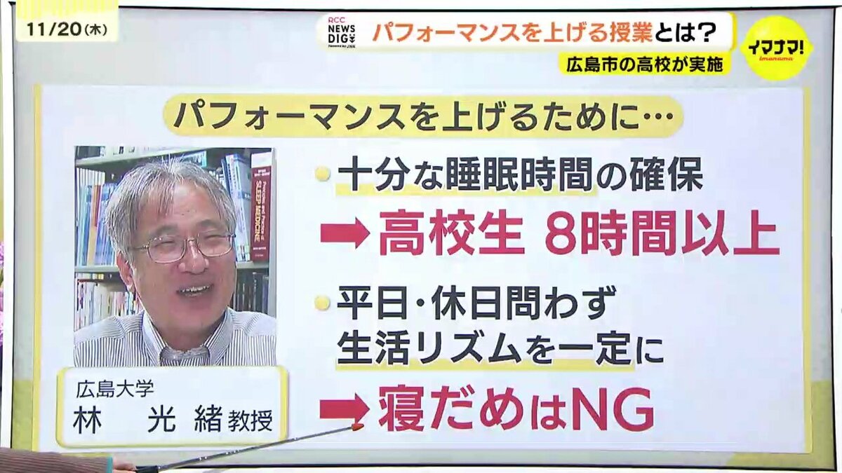 高校生が睡眠スキルを学ぶ意義について、睡眠の研究を続ける広島大学の林光緒教授も大きな期待を寄せています。